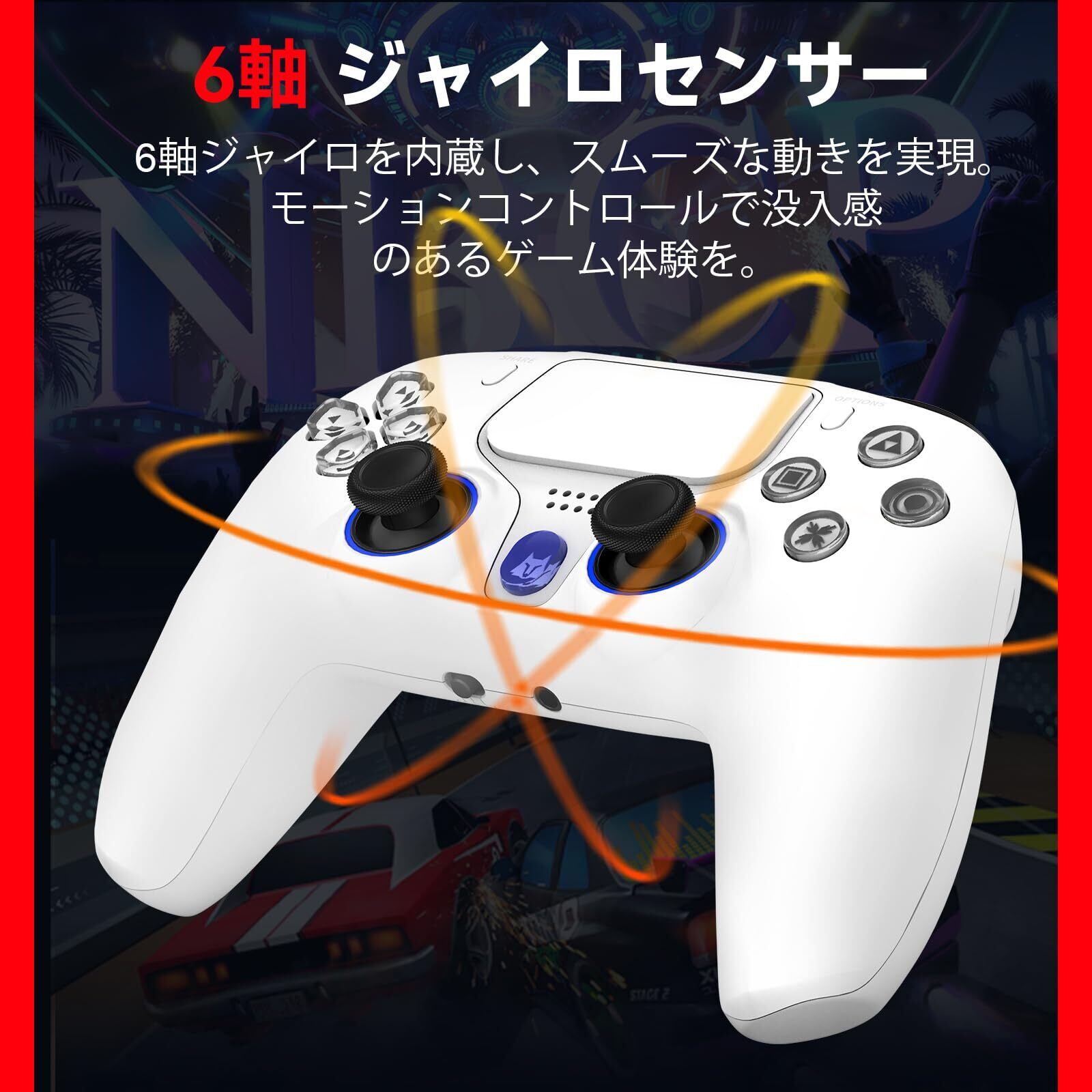 「本製品にはホール効果トリガーが搭載されており、精密な動作を実現。スティックの反応速度が格段に向上し、より繊細な操作が可能です。特にレースゲームやFPSにおいて、あなたのプレイスタイルを一変させることでしょう!」