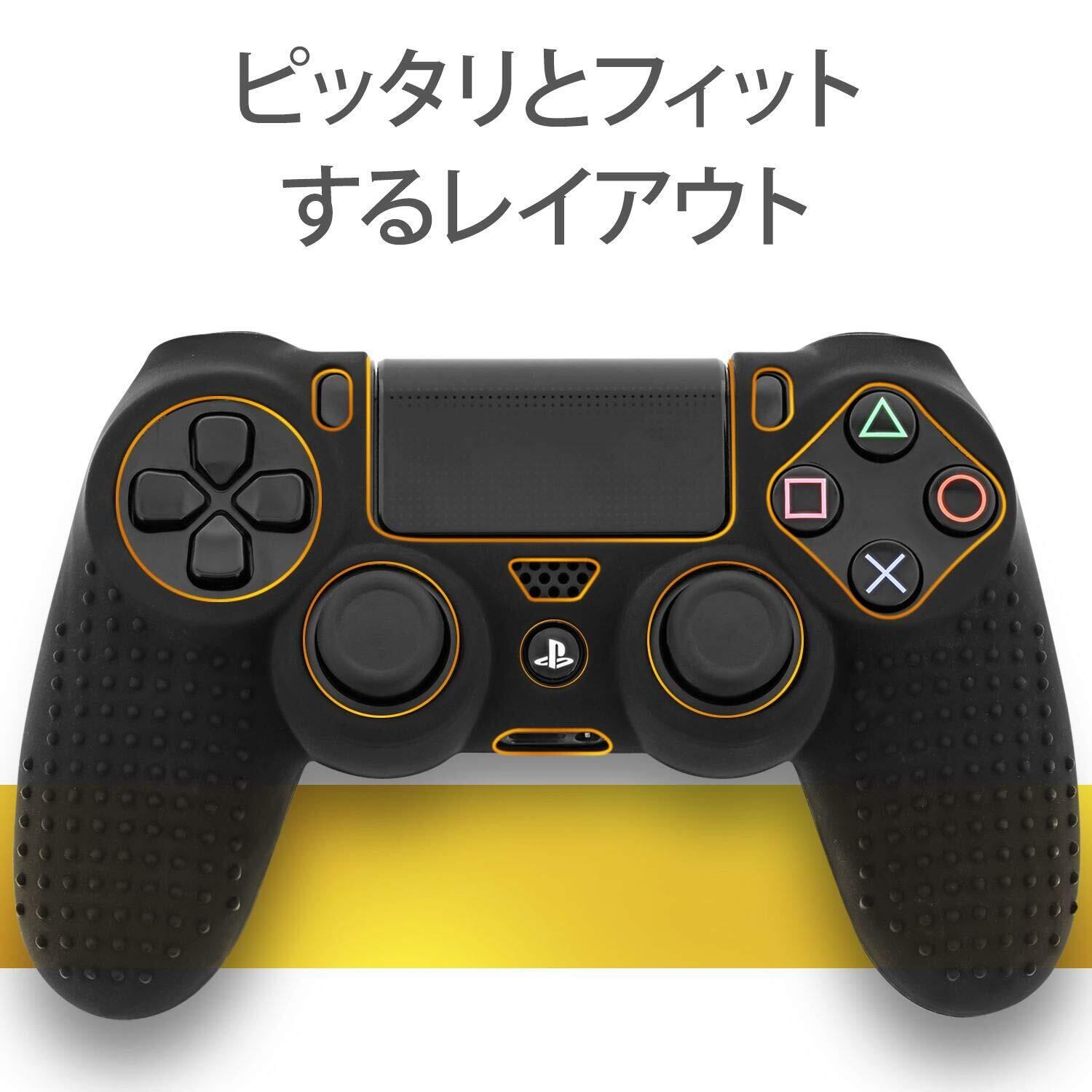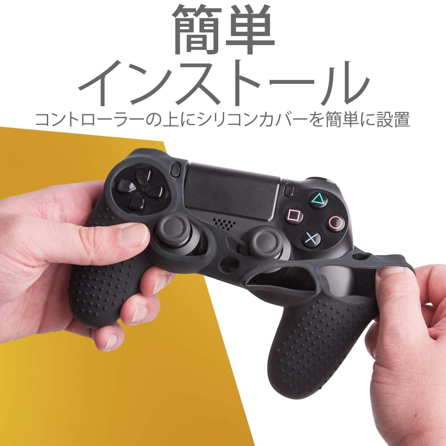 「この『Fosmon シリコンスキンケース』は、PS4のDualshock 4コントローラーにぴったりフィットし、傷や衝撃からしっかりと保護します。頑丈なシリコン素材が、って不意な落下や衝撃から大切なコントローラーを守ります!」