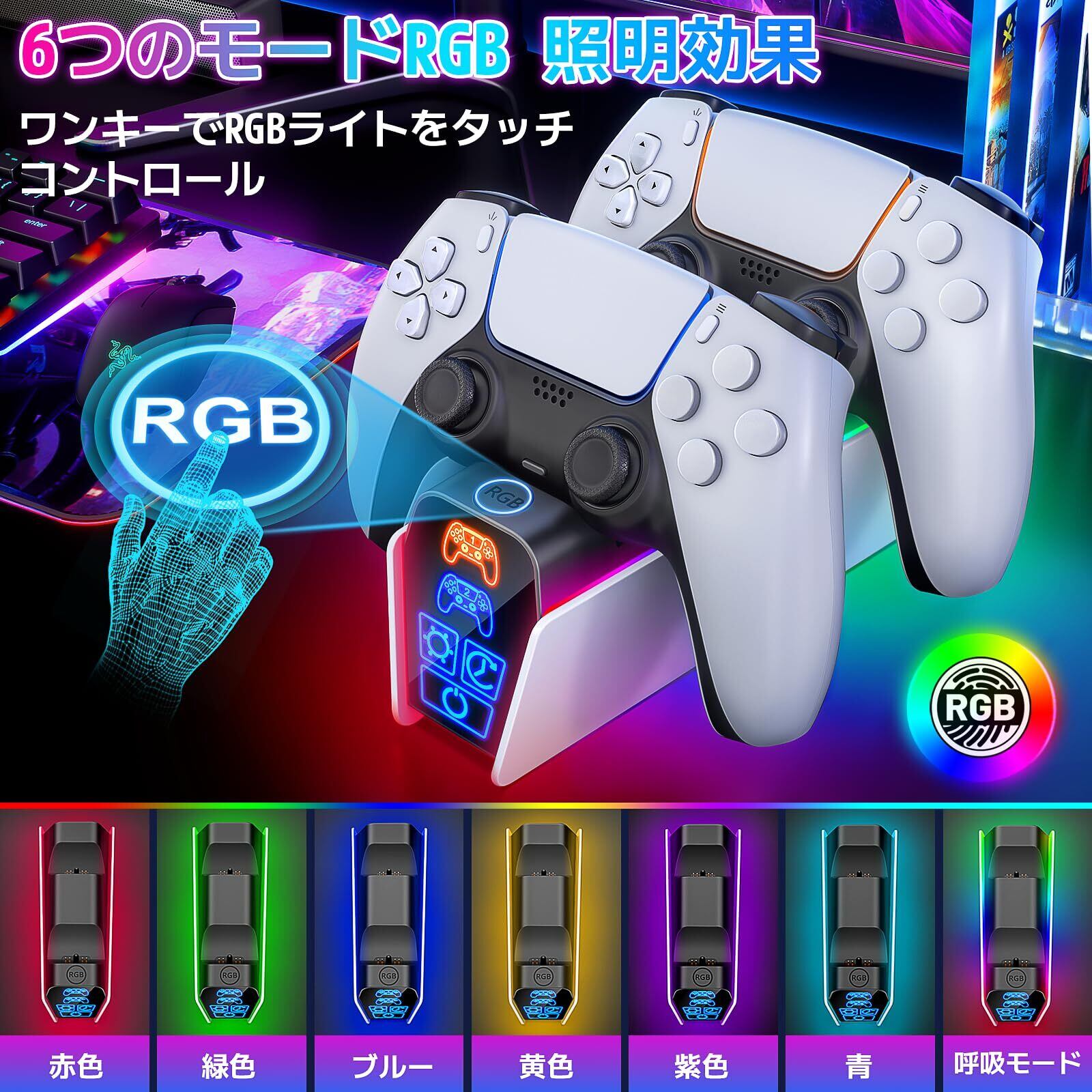 「2024年新登場」Fenolical PS5 コントローラー 充電スタンド 急速充電 2台同時充電可能 置くだけ充電可能 過充電防止 タイミング機能付き