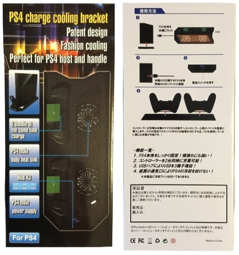機能2:クーリングファンがある他社製と同型ですが、検証結果や他社品のレビューからPS4本体の数倍の騒音を発生させ、スタンバイ中にコントローラーを充電する際にもOFFに出来ず騒音を発生し続けるため本品ではファンを除去しました。ファン用の吸気口と底面スリットを完備しているためPS4本来のファンによる放熱性は十分確保しております。