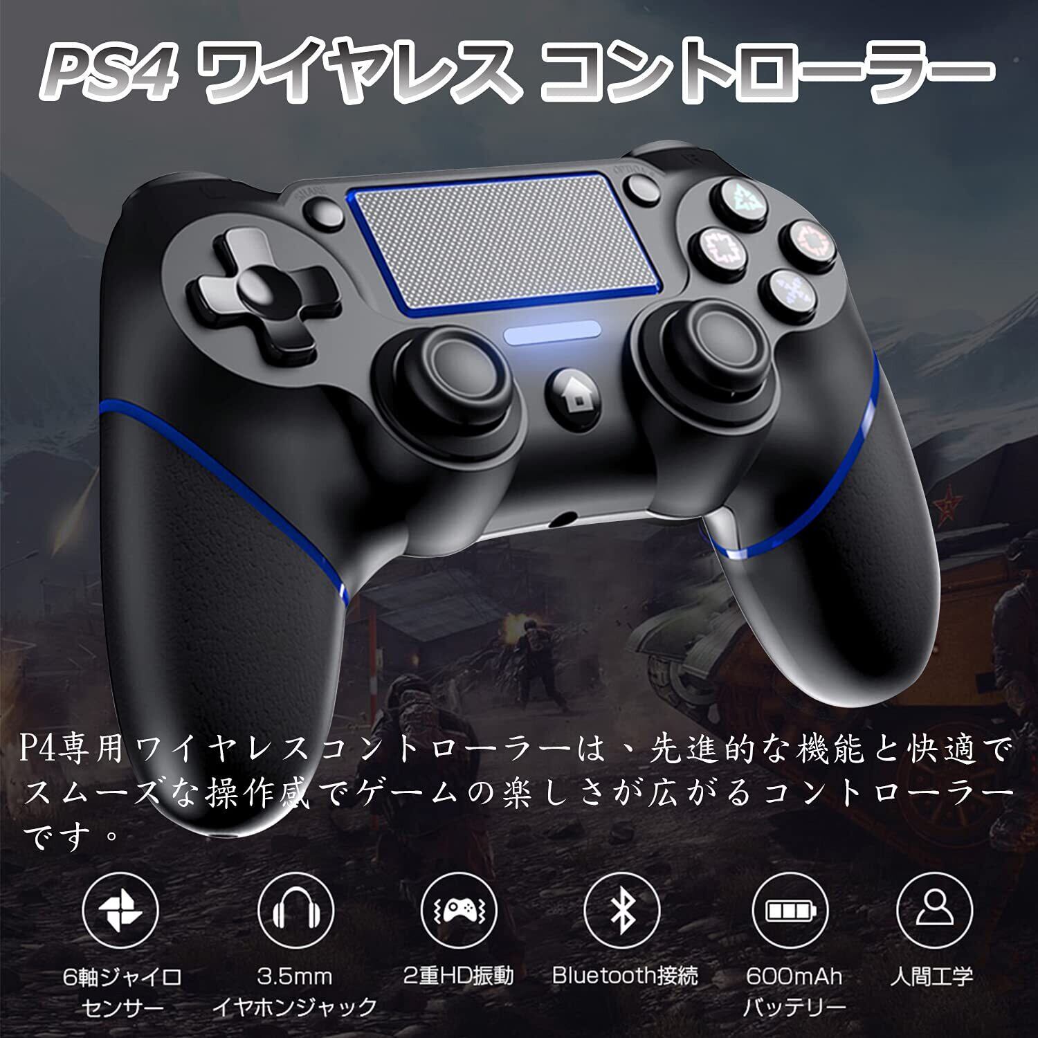 【純正品より多機能・様々な機能を搭載】最新ぷれ すて4 コントローラー 基本機能に加えて、安定したBluetooth接続、連射機能、二重振動、加速度・重力感応、タッチボタン、タッチパッド、LEDライト、3.5mmイヤホンジャック、低電圧警告機能,様々な機能がサポート。6軸センサーを搭載したP4 こんとろーらーで臨場感あふれるので、ヘッドセットを差し込んでゲームの世界にどっぷり浸かることができます。高感度のタッチコントロールパネルと共有ボタンがあり、複数人数で様々な使い方ができます。独自のデュアルショック機能が搭載され、タイムリーに振動がプレイヤーへ伝わり迫力あるプレイが可能に。本格的なゲームが楽しますよ。(ご注意:初めてペアリングする際はUSBケーブルをご使用ください)。