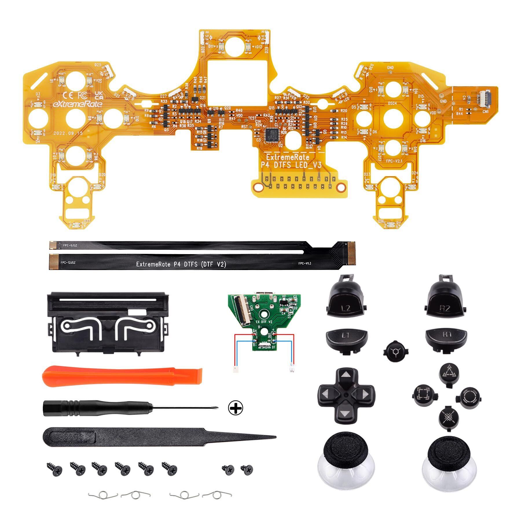 eXtremeRate ps4コントローラーに対応用マルチカラー発光D-padサムスティックトリガーホームフェイスボタン、ps4 Slim Pro CUH-ZCT2コントローラーに対応用DTFS (DTF 2.0) LEDキット【ブラック】