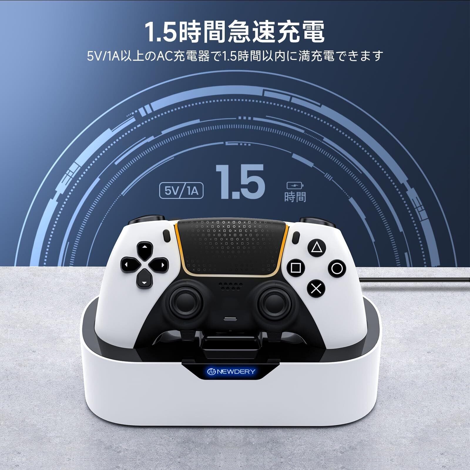 NEWDERY PS5 コントローラー 充電スタンド 収納スタンド 急速充電 置くだけ充電 ps5コントローラー 周辺機器 アクセサリ USB-Cケーブル付属 LED指示ランプ付き 過充電防止 コンパクト 軽量 ホワイト