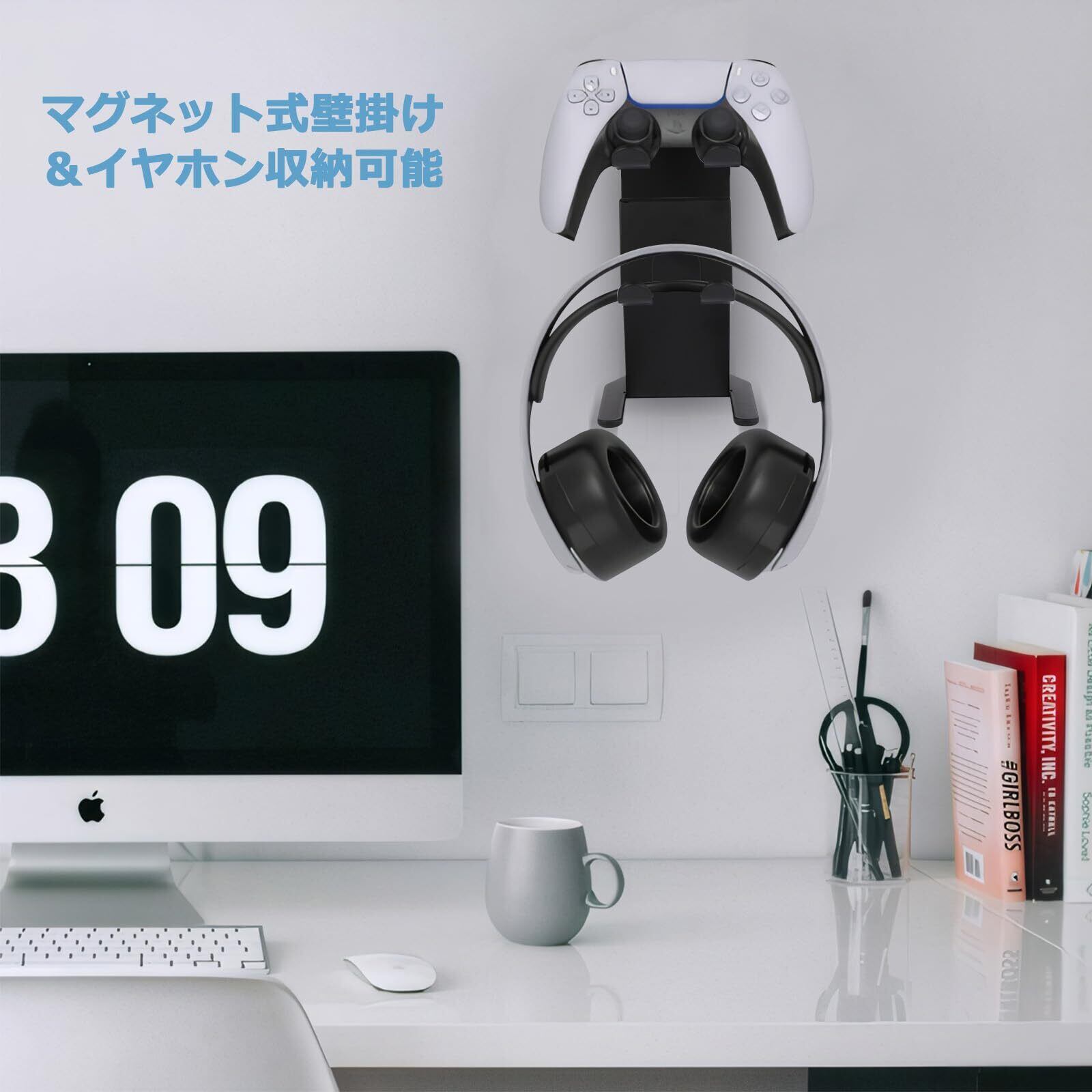 デスク&壁掛け両用:デスク上での安定感抜群のスタンド利用はもちろん、強力マグネットで壁面へのスッキリ収納も可能。空間を選ばずゲーム環境をスリム化します。