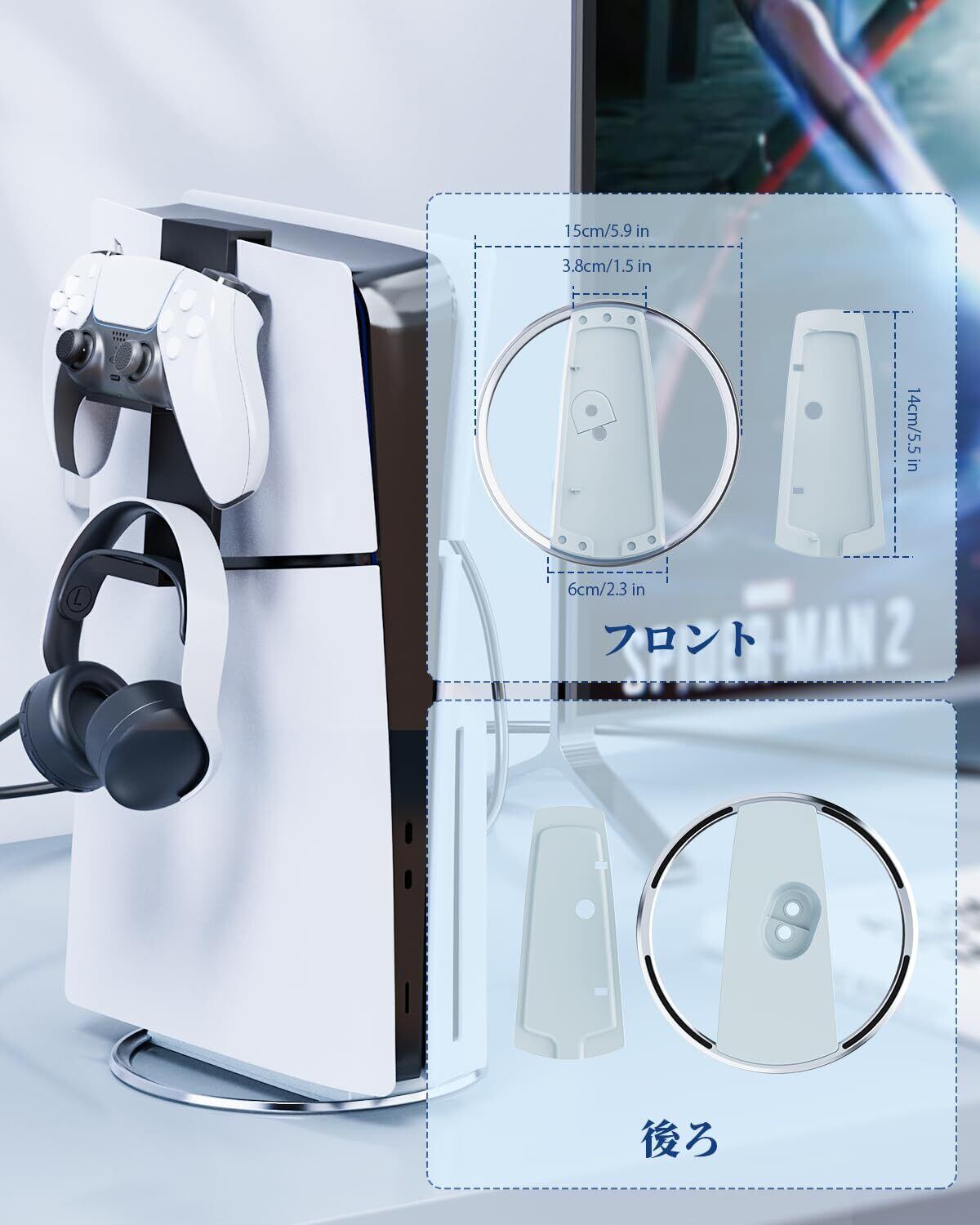 「シンプルで洗練されたデザインが特徴のこのスタンドは、ゲーム機を支えるだけでなく、インテリアとしても魅力的な存在です。見た目にもこだわったこのスタンドは、あなたのゲーム空間をより一層引き立てるでしょう。」