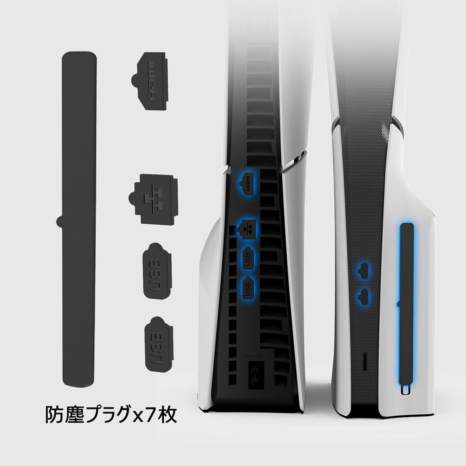 【データポート防塵】7ポートのダストプラグが付属しており、ダストがPS 5本体のオプティカルドライブの正常な動作に影響します。また、他の長時間使用しないポートは空気やほこりの影響を受け、老化してポートの使用に影響を与え、ポートダストプラグは煩わしいほこりを効果的に回避し、使用しやすい!