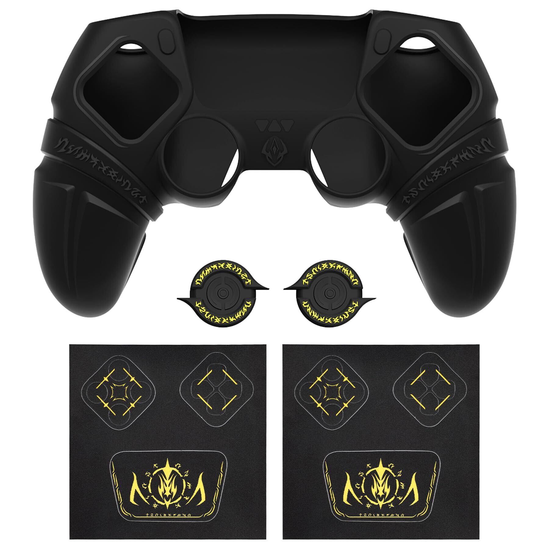 PlayVital Runesエディション ps5対応用シリコンカバー、親指グリップキャップやタッチパッドステッカーや十字キーステッカーが付き、カバーかけたままps5純正の充電スタンドに対応します【ブラック】