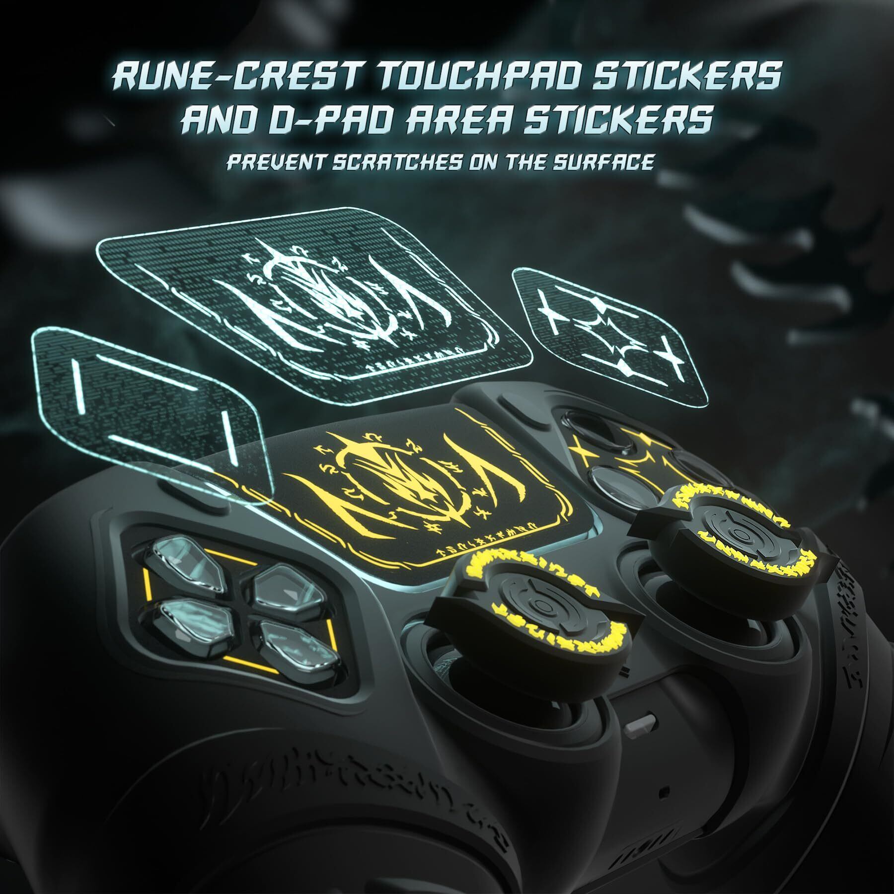 【オリジナルルーンデザイン:】このps5コントローラー適用するシリコンカバーは、ミスティックルーンエレメントを取り入れています。ルーンの柄が描かれたタッチパッドステッカー、マッチング十字キーエリアステッカー、シールド形状テクスチャ、グリップ部のルーンパターン、ルーンテーマのサムグリップ、ミスティックトーテムのロゴボタンエリアなど、独特のデザインが魅力です。