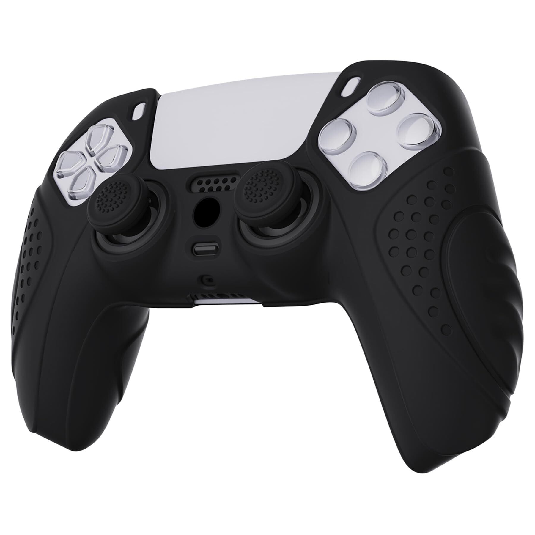 eXtremeRate PlayVitalPS5コントローラーに適用するカバー人間工学に基づいたソフト滑り止めコントローラーシリコンケースカバー、PS5コントローラーに適用するブラックジョイスティックキャップ付き【ガーディアンエディション-ブラック】