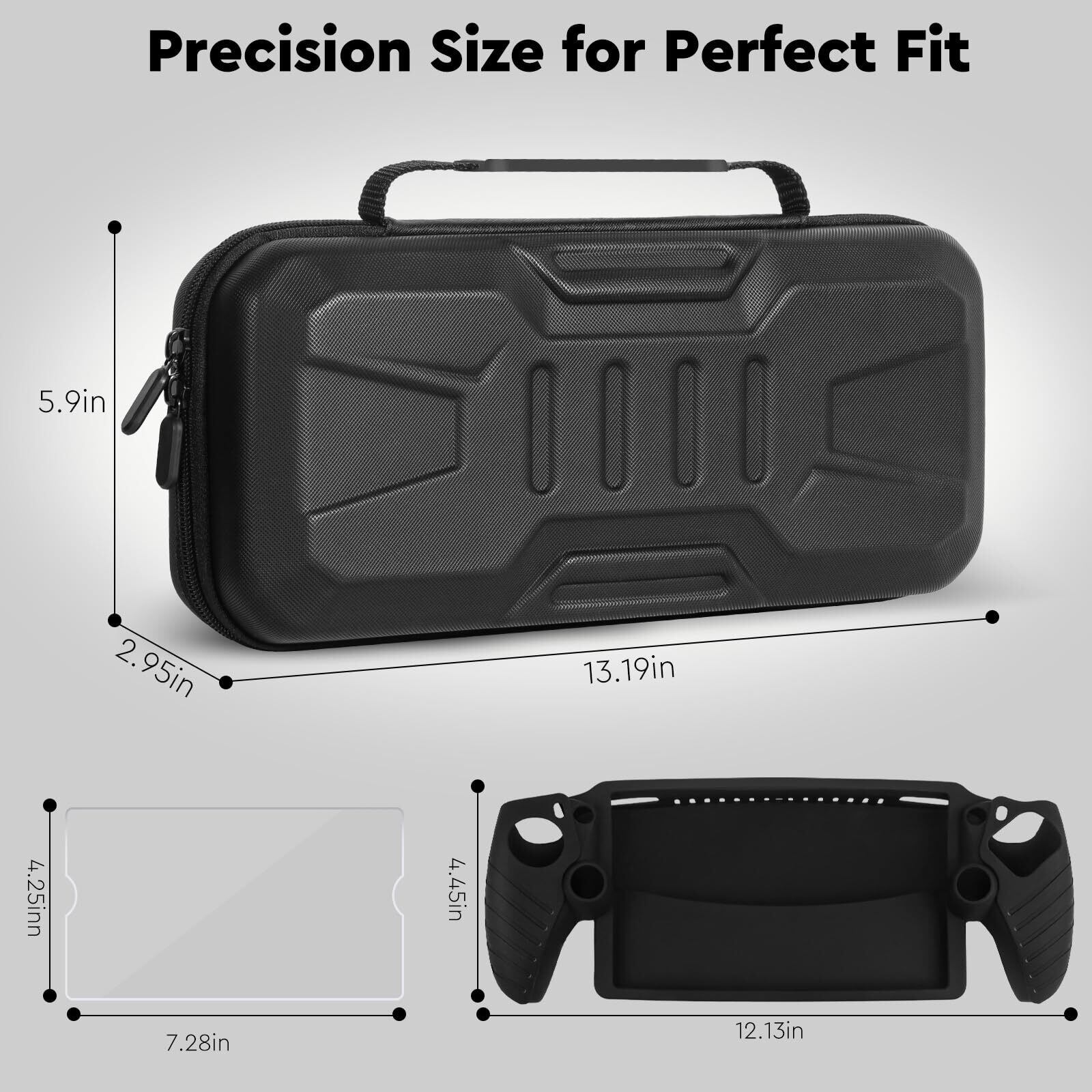 JoyHood 収納ケース専用PS Portal - 3 in 1、ケース用 PSポータルハード、耐衝撃バッグ対応 PS5リモートプレイヤー + シリコンケース + 1枚保護フィルム、ハードケース対応 Playstation Portal 大容量 全面保護 持ち運びに便利 (ブラック)