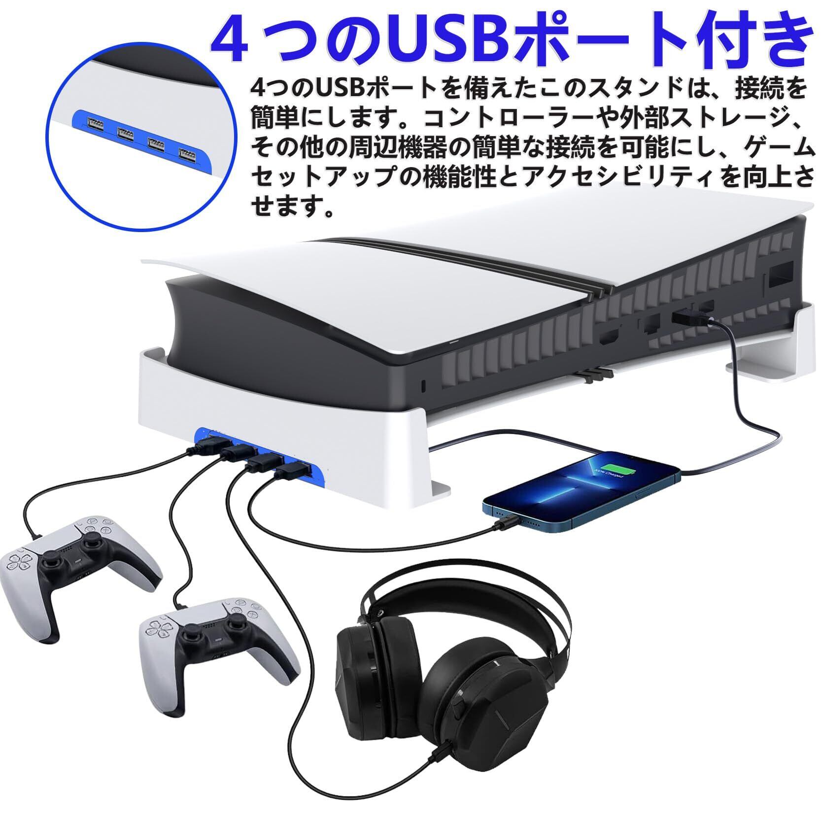 新型 ps5 Slim用/ps5 pro用 横置きスタンド 4つUSB拡張ハブ付 放熱改善 新型PS5 用水平スタンド 【PS5 旧型非対応】転倒防止 傷付き防止 簡単に取り付けます 本体をもっと安心に収納PS5 Slim 水平スタンド 新型PS5ディスク & デジタル版/PS5 Pro デジタル版対応