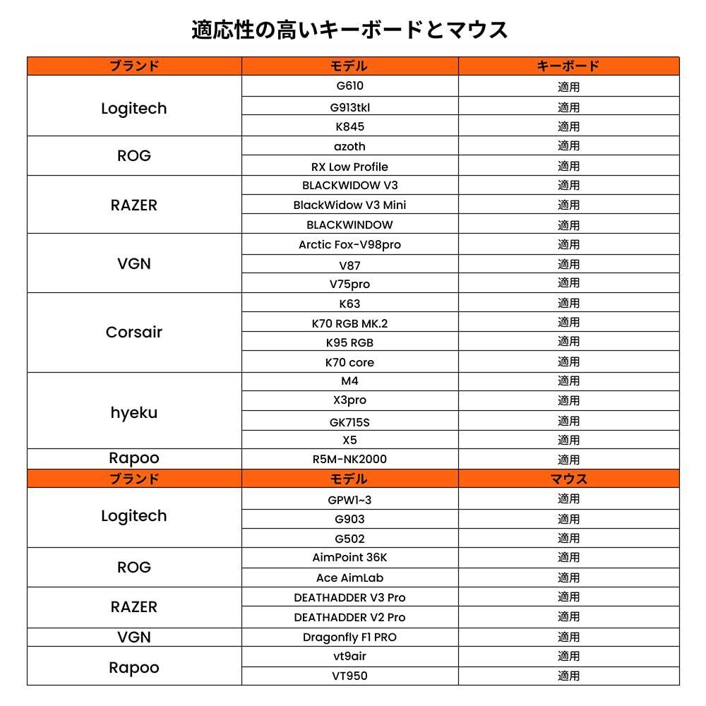 高い精度を誇り、最大1000Hzのポーリングレートに対応しています。マウス、キーボード、ジャイロコントローラーなど、さまざまな入力デバイスとの組み合わせでも優れた適応性を持ちます。
