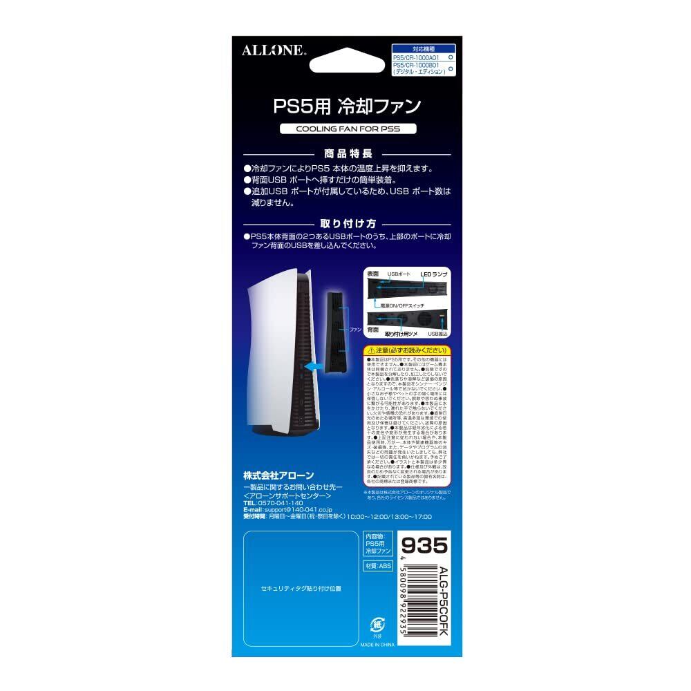 アローン PS5用冷却ファン 本体の背面に取り付けられる一体型で省スペース USBポートへ挿すだけの簡単装着 排熱 熱対策 静音 日本メーカー ブラック BK