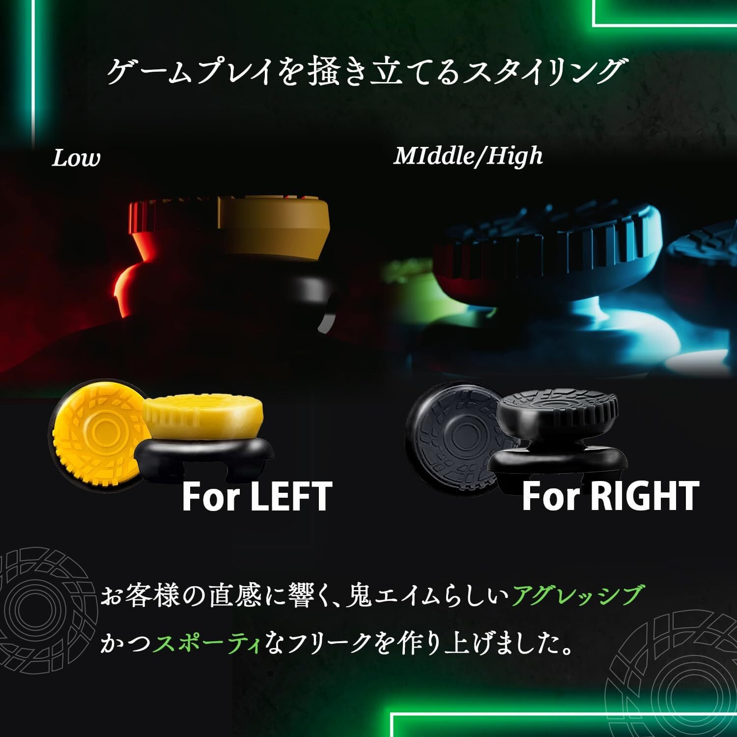 【3種類のサイズ展開】Low,Middle,Highの3種類の高さを用意。プレイスタイルに合わせて選択可能。(左スティック推奨:Low 右スティック推奨:Middle,High 付属するサイズはよくご確認ください。)