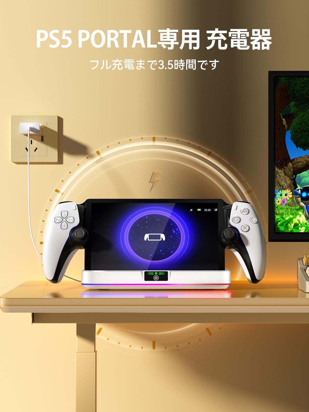 「この『NEWDERY PS Portal用充電ドック』は、PS5 Portalリモートプレーヤー専用の充電器ドックです。USB-Cケーブルを使用し、高速で安全な充電を実現。ゲームプレイ中でも心配せずに充電でき、続けて楽しむことが可能です!」