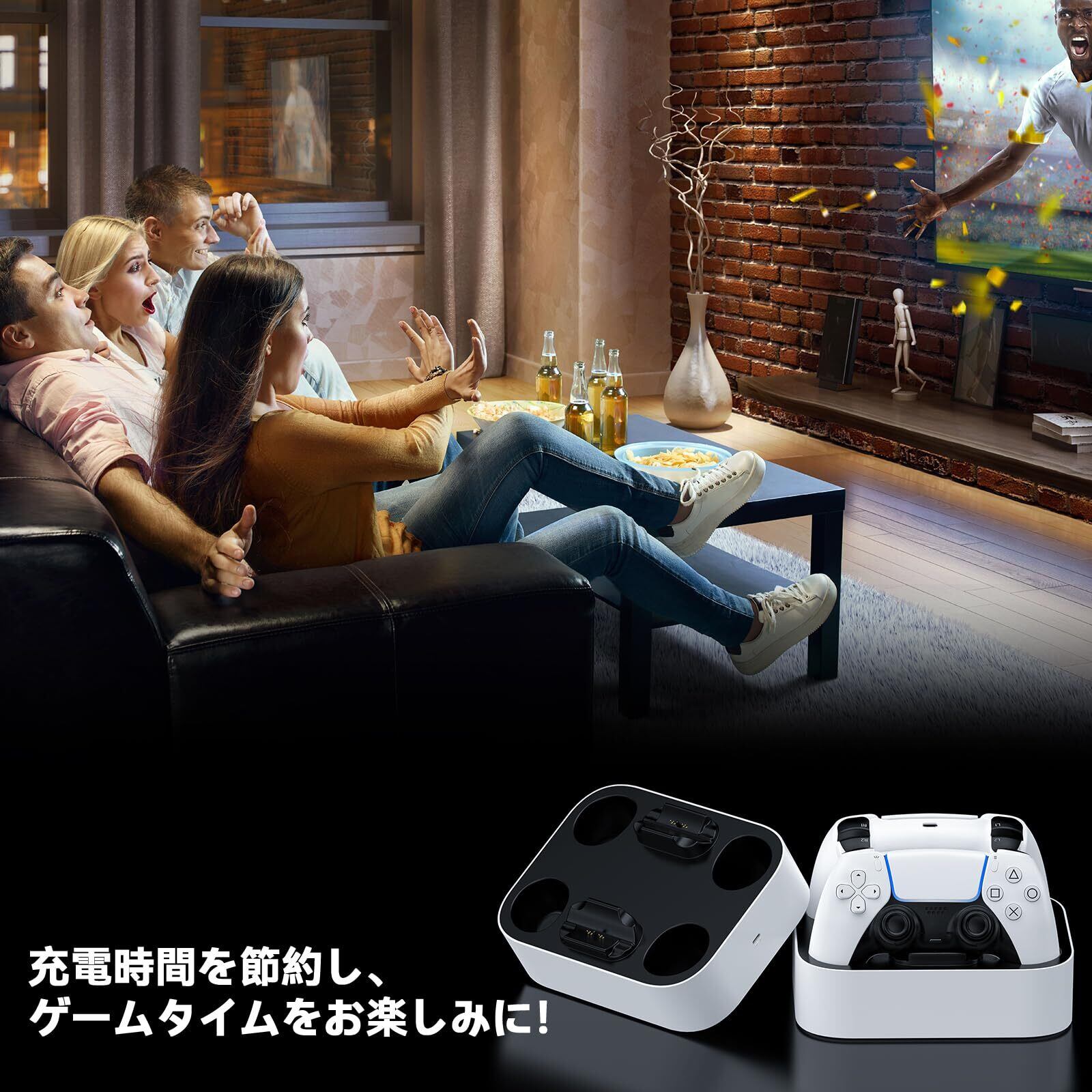 「この『LVFAN PS5 コントローラー 充電器 充電スタンド』は、PS5コントローラーを2台同時に充電することができ、オンラインバトルやマルチプレイでも安心して使用できます。急速充電機能により、短時間でフル充電が可能です。」