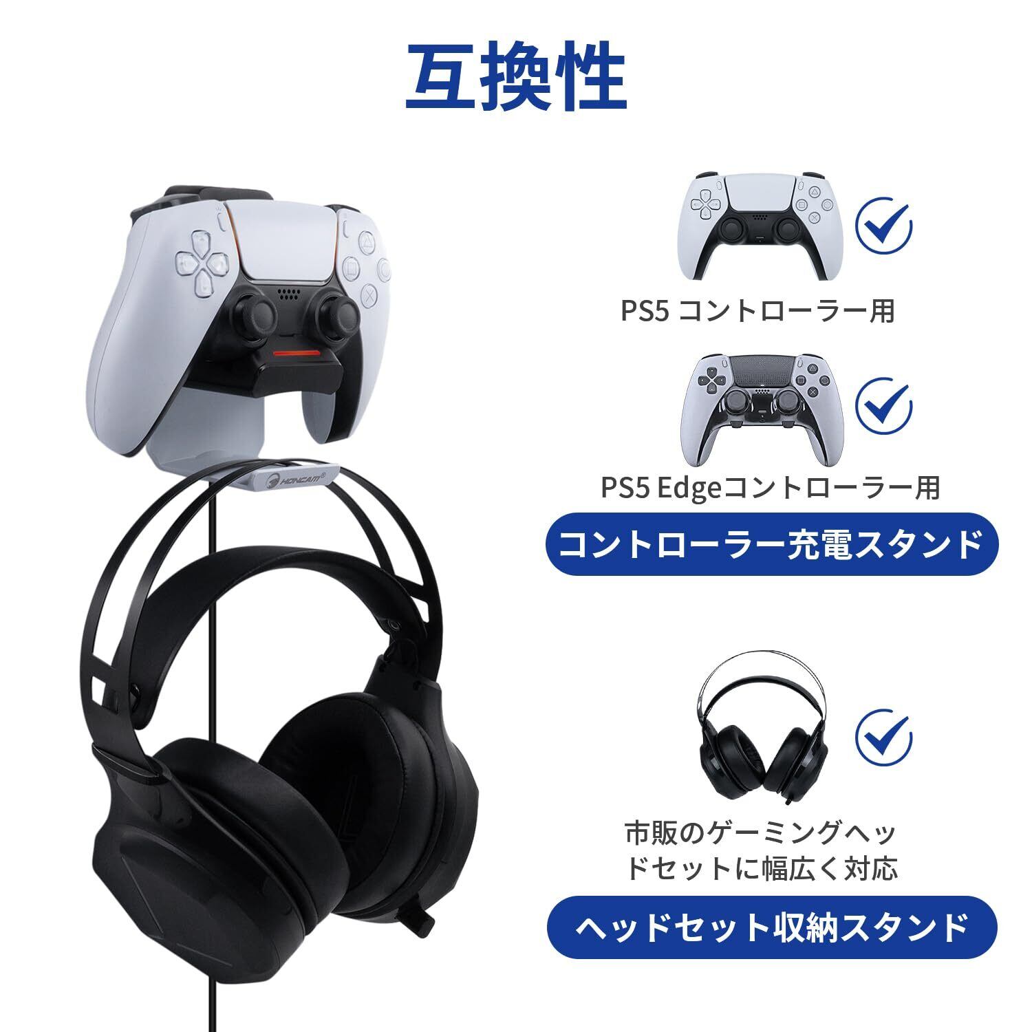 「コントローラーの充電スタンドには便利なヘッドホンハンガーも付いており、ゲーム周りをスッキリと整理することができます。ヘッドフォンやその他のアクセサリーを手の届く場所に保管できるため、すぐに準備万端でプレイ開始できます!」