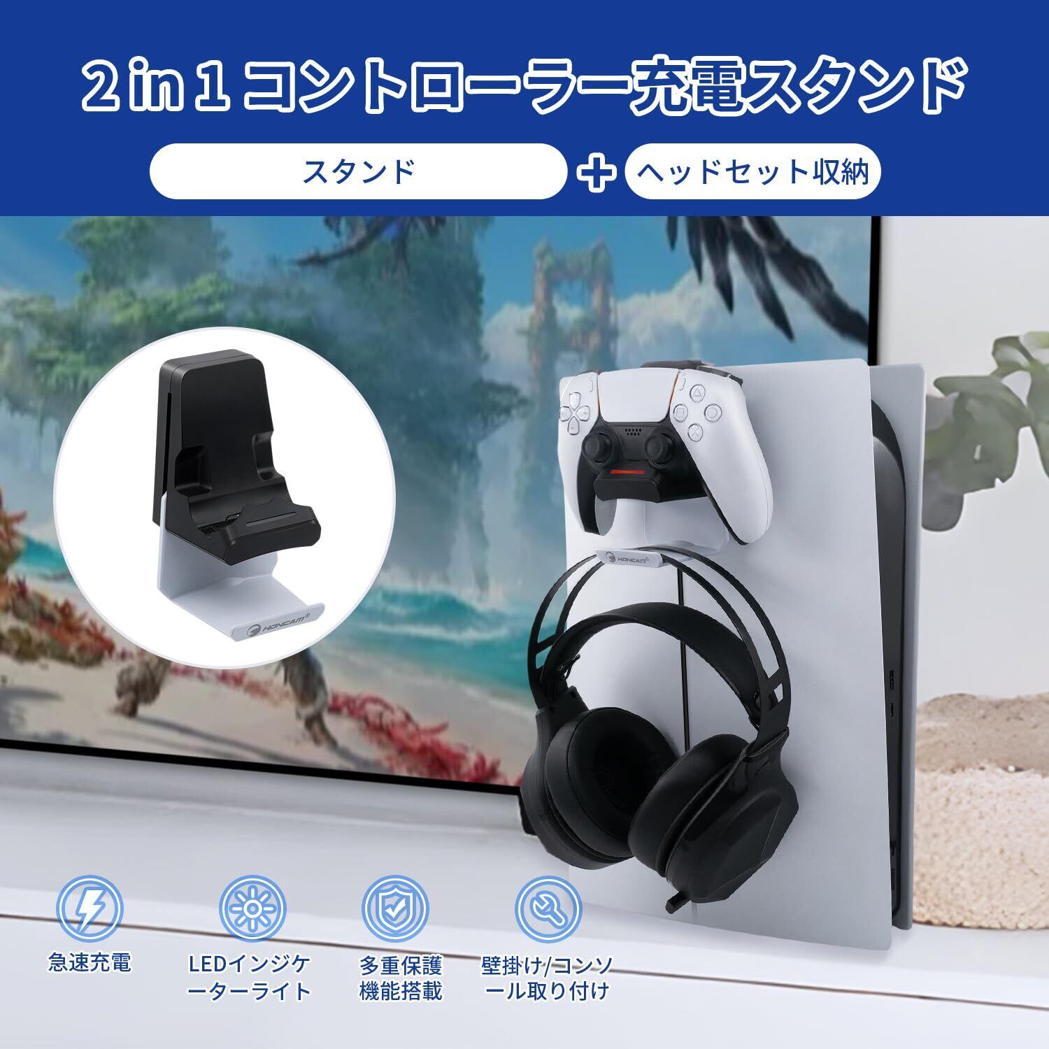 Mcbazel 2 in 1 PS5 Edge/DS コントローラー用 急速充電スタンド ヘッドホンハンガー付き 過充電防止 多機能収納ブラケット PS5/PS5 Pro/PS5 Slim対応 安定材質 ホワイト 省スペース設計-ホワイト