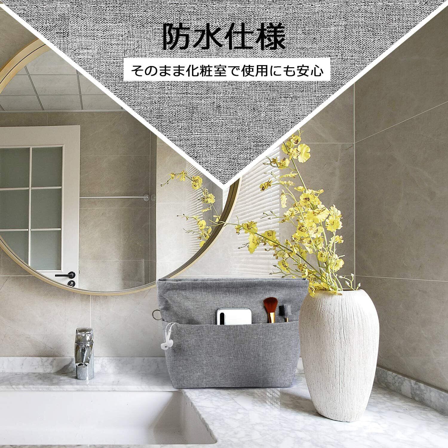 盗難防止/中身隠す。ファスナーで上部が閉じられて中身が見えなくなり、防犯上に役立ます。倒れても小物が落ちないし、そのままカバンから取出して化粧室で使用にも便利です。