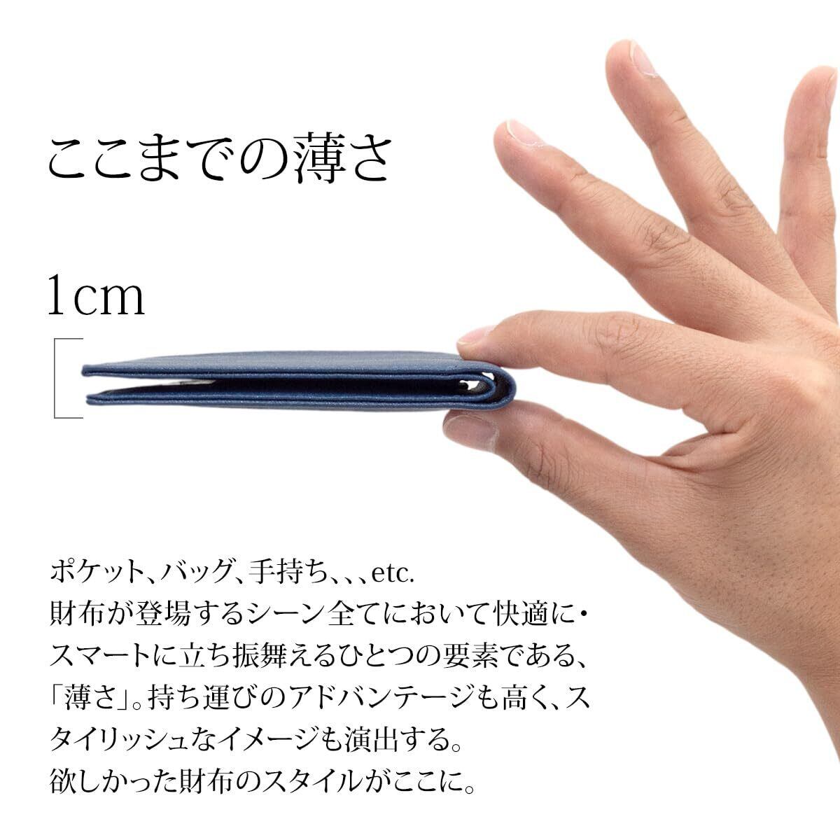 「この財布は極薄のデザインを実現しながらも、収納力も抜群です。お札入れや小銭入れ、カード入れをしっかり備え、必要なものをすっきりと整理できます。ポケットに収まりやすく、持ち運びのストレスを軽減します。」