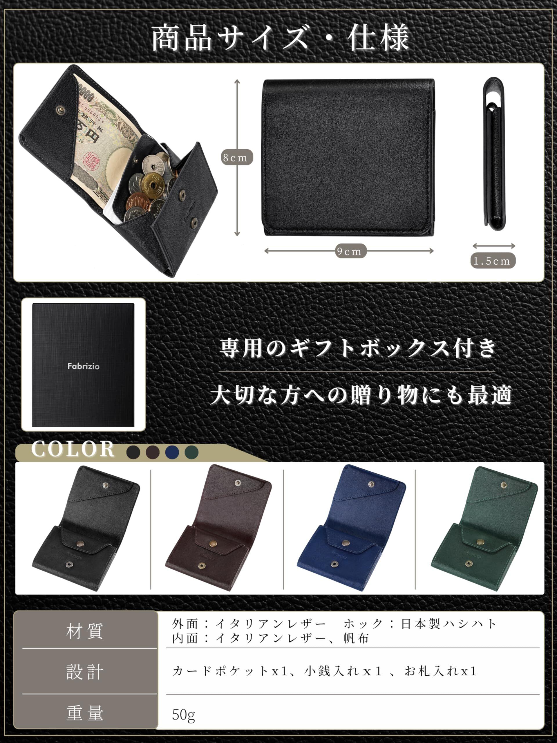 [ファブリツィオ] 財布 メンズ レディース 2つ折り 小銭入れ ミニ財布 小さい 薄い コンパクト 柔らかい 使いやすい イタリアン レザー 一流の革職人が作る 本革 (ブラック)