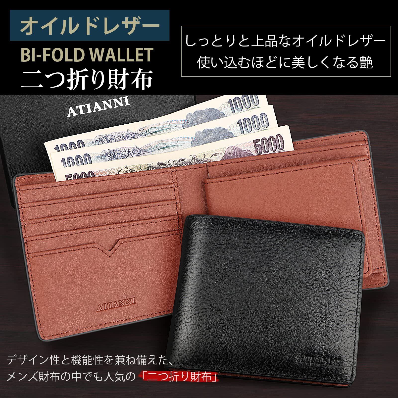[ATIANNI] 財布 メンズ 2つ折り 本革 オイルドレザー 薄い ボックス型小銭入れ RFID&磁気スキミング防止 大容量 一流 の 財布 職人 が 作る 二つ折り財布 ふたつおり サイフ コンパクト (Black)