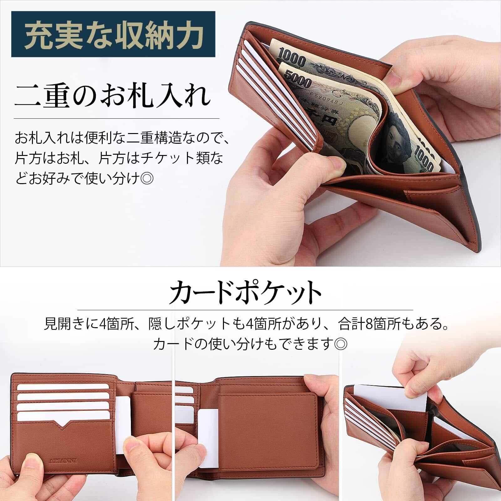 【誰でも喜ばれるプレゼント・6か月期間】細部にもこだわりを見せた高級感のある仕上がりとなっている二つ折り財布は、最高級レベルの化粧箱を付属してお届けします。もらった全ての方が嬉しくなるように当店はいろいろ工夫して頑張ってこの財布に仕上げました。 父の日、クリスマス、バレンタイン、就職祝い、入学祝い、卒業祝い、あらゆるシーンのプレゼントに最適です。また、商品はご安心できる6か月の期間が付いておりますので、万が一商品は不具合が発生した場合、販売元までメールでご連絡ください、全力を尽くしてご満足できる対応させていただきます。