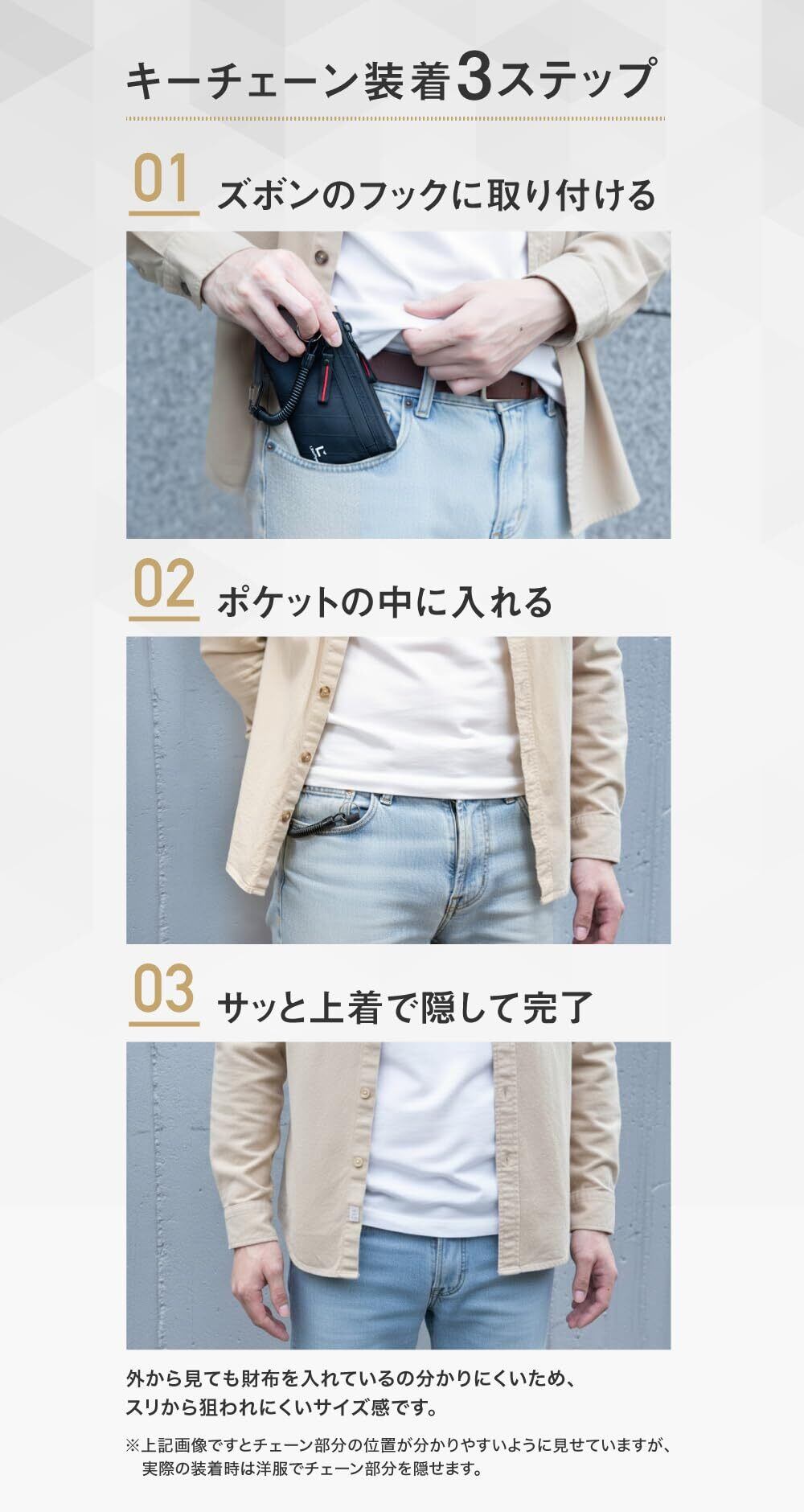 - 特徴:スキミング防止、薄型デザイン、小銭入れ、カードポケット多数、取り外し可能チェーン付き