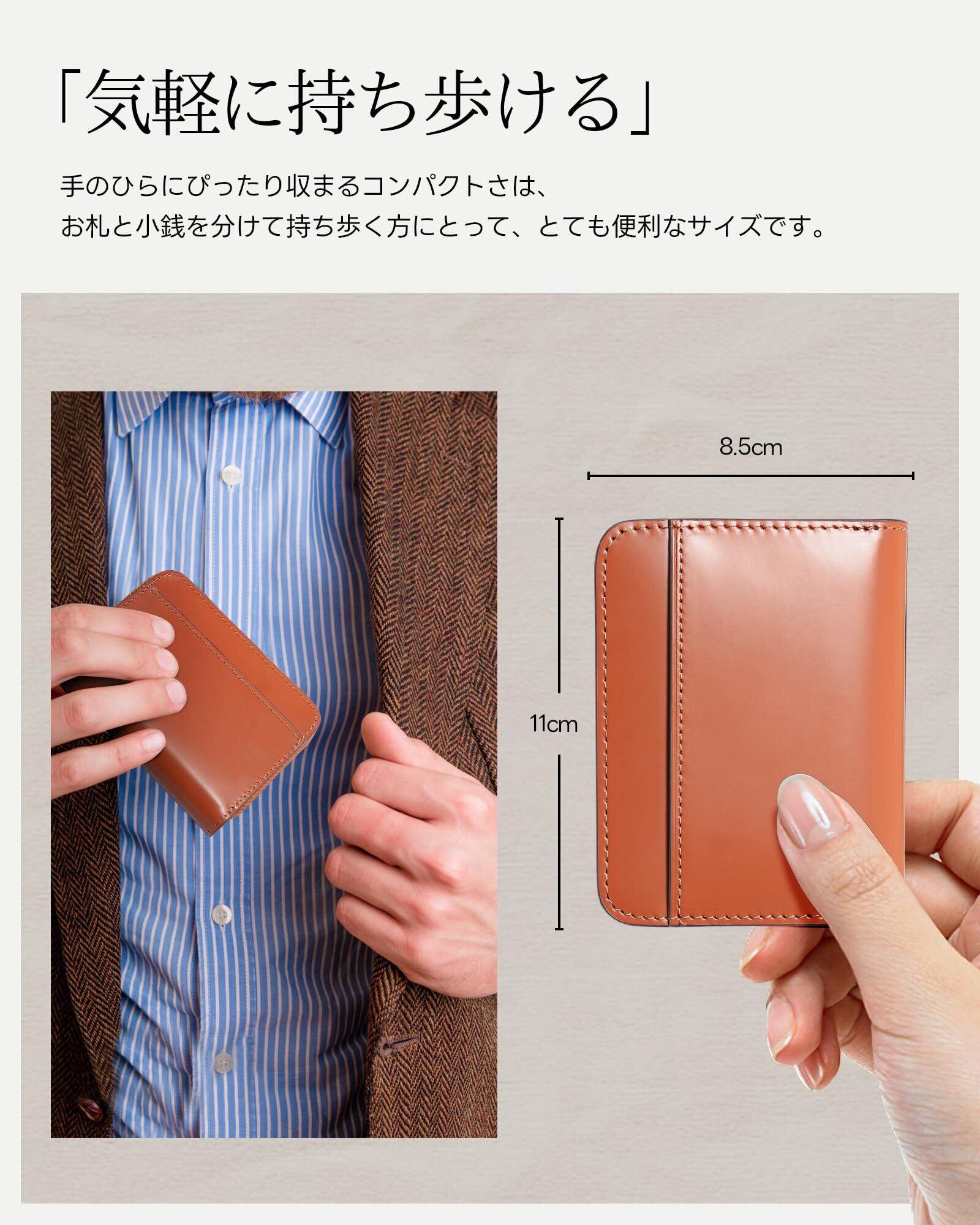 「仕様·収納スペース」小ささも、機能性も諦めない。日常だけでなく、アウトドアや旅行にも適しています。本革小銭入れ本体サイズ:2.5*8*11cm 収納可能スペース:内側:ポケットx4 キーチェーンx1 外側:ポケットx1