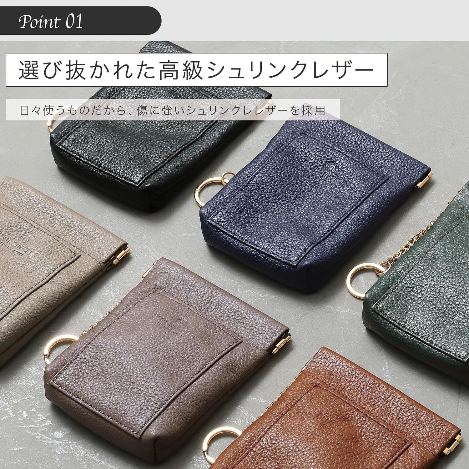 【こだわりの素材と機能性】厳選された上質なシュリンクレザーを使用し、しっとりと手に馴染む質感と高級感ある艶やかな風合いを実現しました。見た目の美しさだけでなく、使い込むほど手に馴染む本革ならではの魅力をお楽しみいただけます。シンプルなデザインと計算し尽くされたサイズ感だからこそ、ミニマルなサイズ感なのに、たっぷり入る!小銭だけではなく、お札やクレジットカード、鍵などもしっかりと収納可能。無駄な仕切りがないからこそ、パッと開けてスマートに使用可能です。日常使いはもちろん、ビジネスシーンでもスマートに活躍する、機能性とデザイン性を兼ね備えたアイテムです。