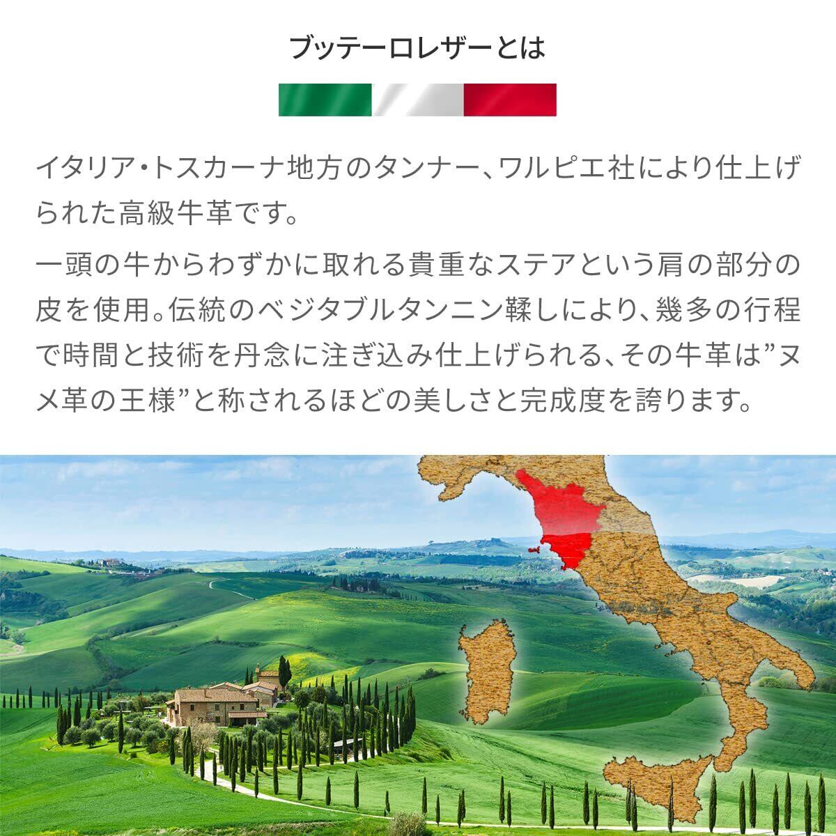 【ブッテーロレザー】 天然染料による染色していることから革独特の香りを放ち、味わい深く、 美しくエイジングしていきます。 もともと大量のオイルが染み込んでいるので、汚れたら乾拭き程度でOK!
