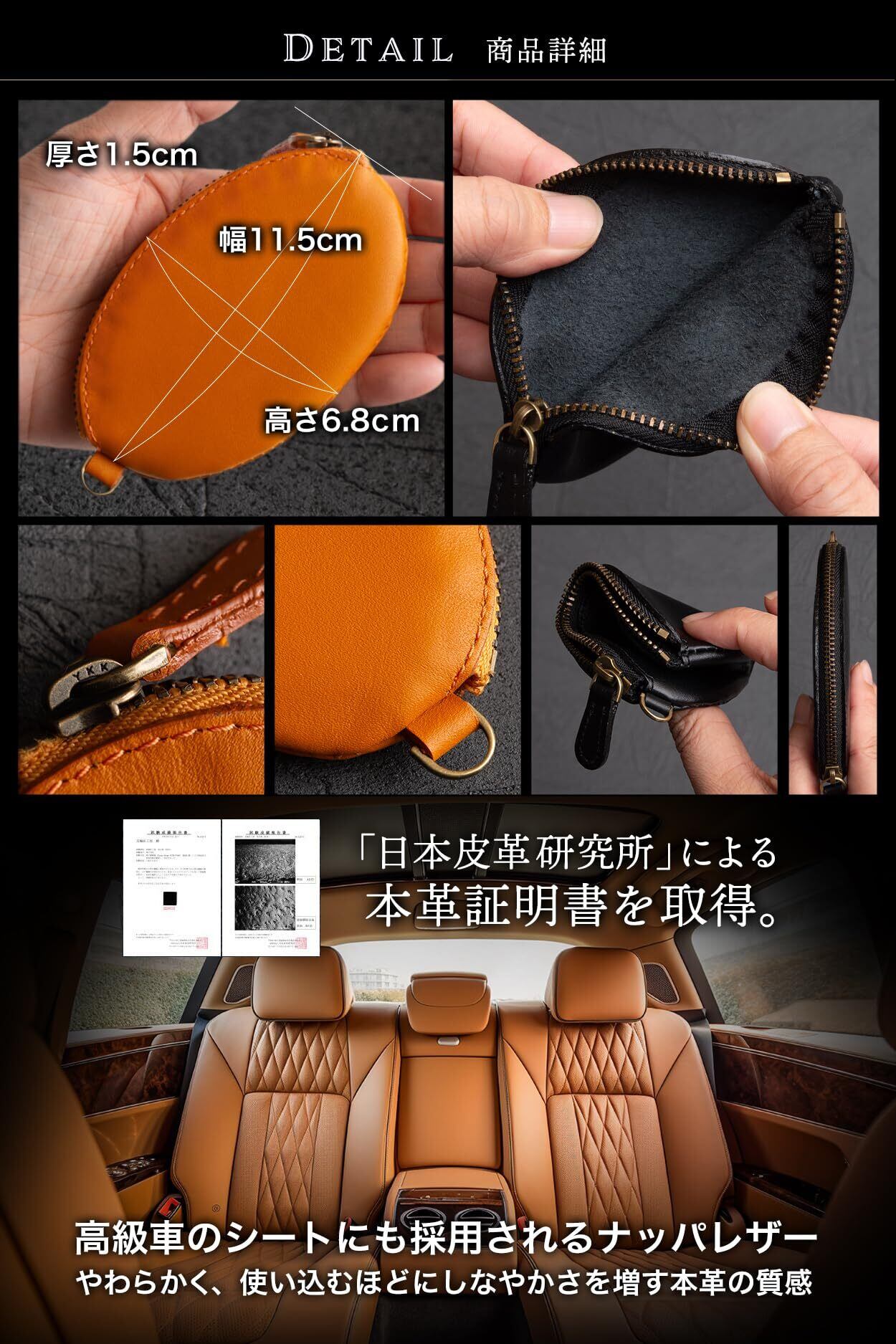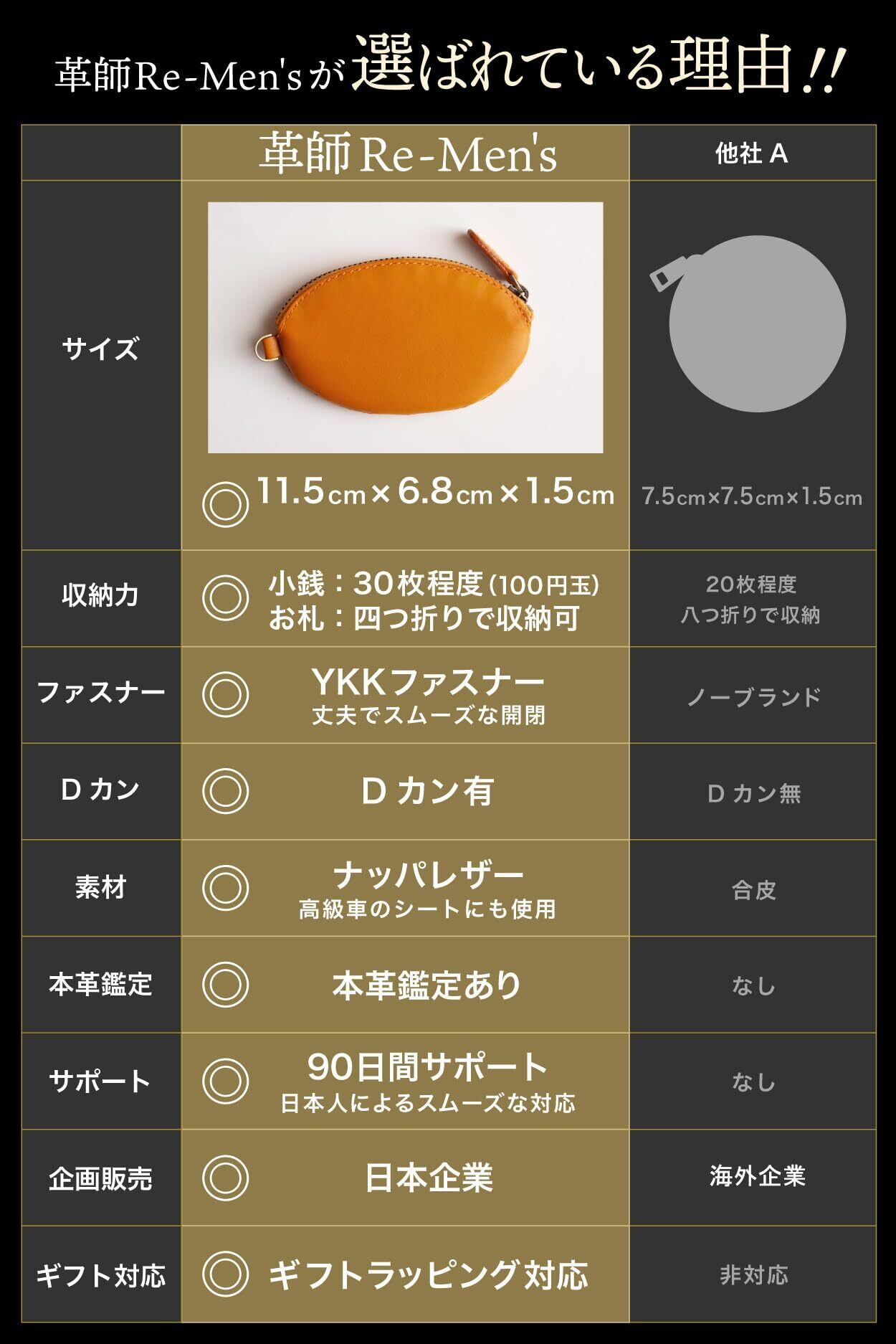 【ブランド】革師Re-MEN’S(革師リ・メンズ)/【商品名】「握りしめたくなる小銭入れ」(楕円タイプ)/【素材】高級車のシートにも使われるナッパレザー(本革・牛革)[専門機関による本革鑑定取得済み]