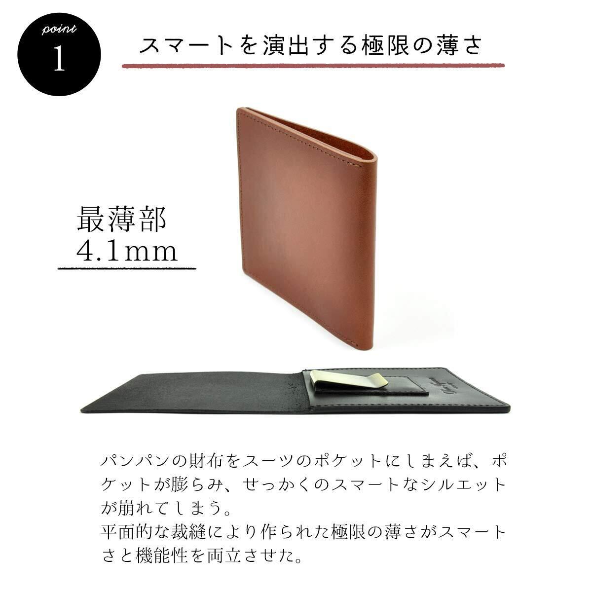 [Dom Teporna] マネークリップ メンズ 薄型 本革 イタリアンレザー カード 収納 カードケース コンパクト ミニマリスト 財布 極薄