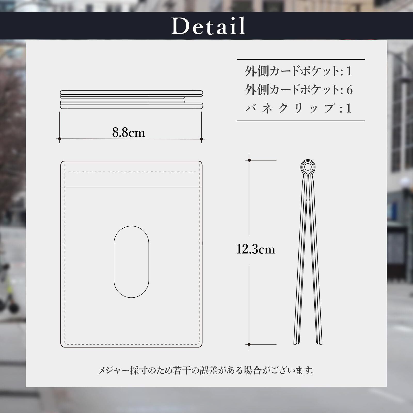 仕様:(外側)ICカードポケット×1、(内側)カードスロット×6 センターマネークリップ×1
