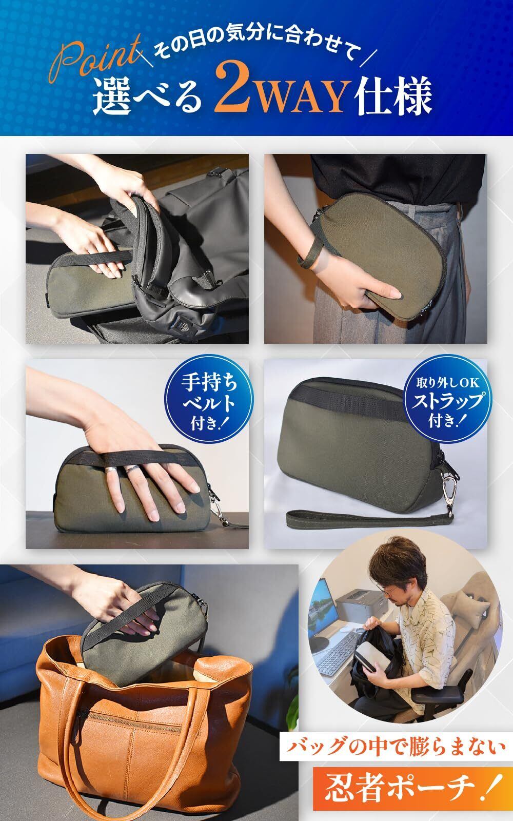 【 自立するガジェットポーチ 】 ガバッと大きく開く設計で、中身が一目で確認でき、デスクに置いても倒れず安定。作業中はペン立てのように「見せる収納」として使えます。バッグの中ではスリムに収まるため、“忍者ポーチ”としてスマートに持ち運べます。