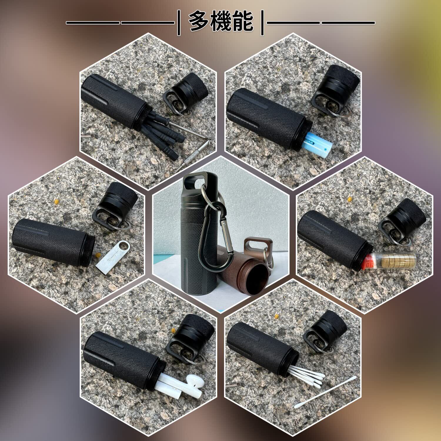 携帯灰皿 完全防水 ピルケース カラビナ付き 耐湿防圧 アルミ 小物いれ 携帯型 (ブラック)