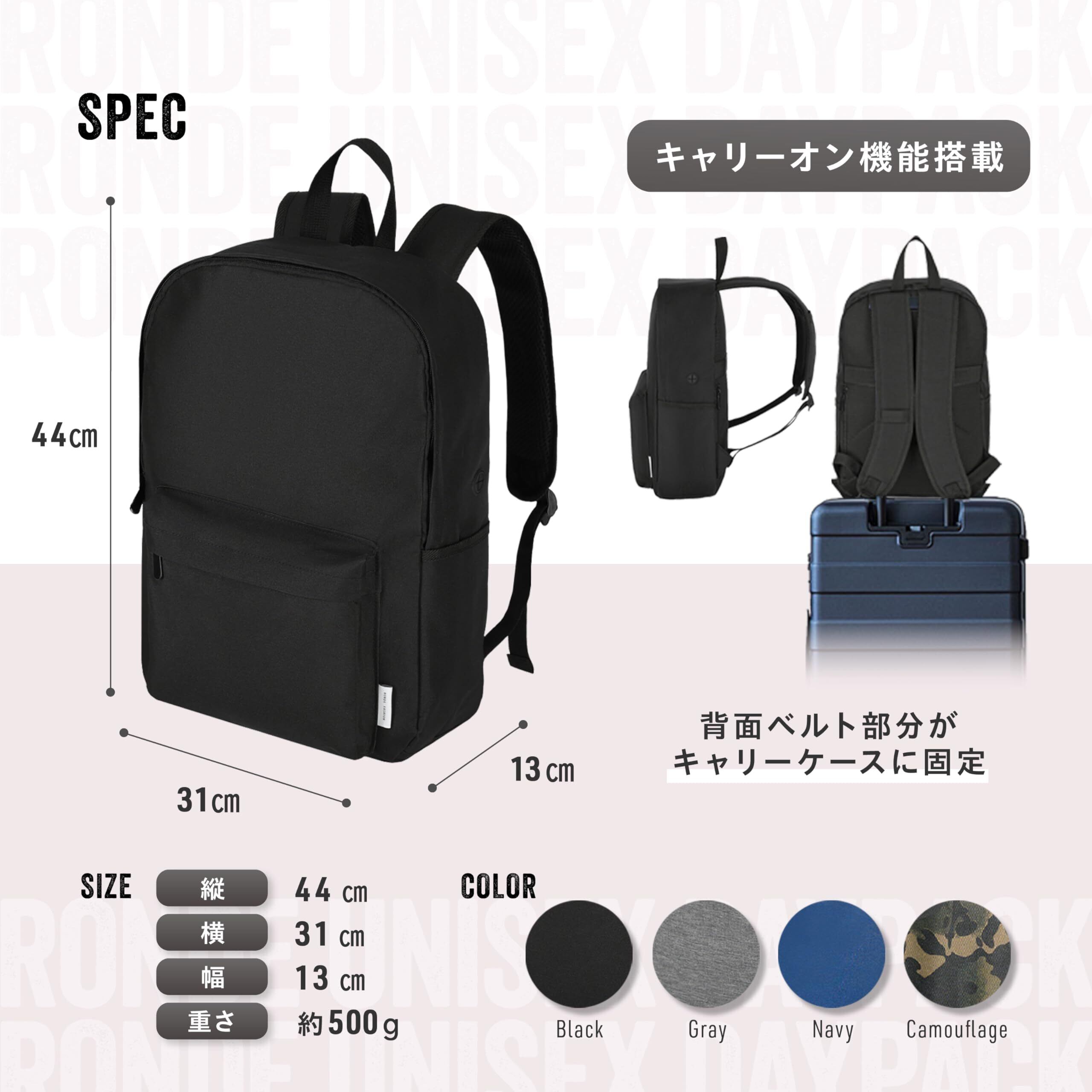 [RONDE] 肩が疲れにくいリュック 約500g 撥水 大容量 リュック 人気 通勤 通学 軽量 撥水 大容量 15L おしゃれ 旅行 キャリーオン PCポケット タブレット お出かけ 黒 グレー ネイビー 迷彩 カモフラージュ シンプル レディース