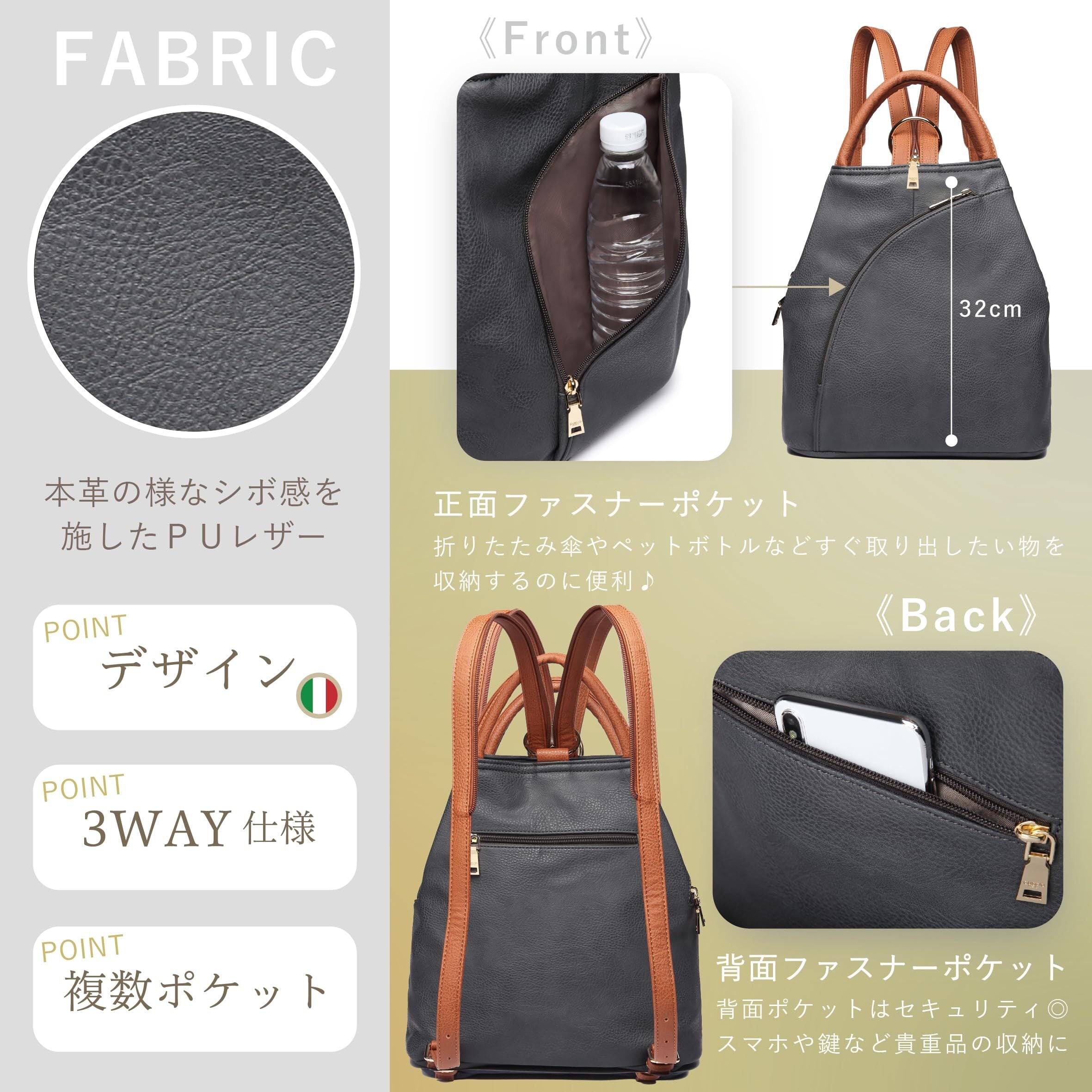 【グッシオ ベーシック】レザータッチ 3WAY リュック x 肩掛け x ハンドバッグ レディース お洒落 ファッションコーデ 高見え 多機能 italy 人気商品 120406
