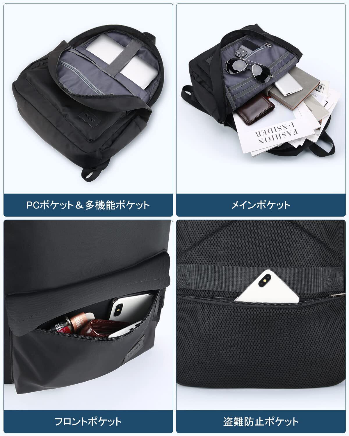 【大容量&15ポケット】バッグサイズ:40 * 28 * 13cm。大容量のカジュアルバッグなので、会社紹介書類、ウォーターカップ、折りたたみ傘、化粧ポーチ、14インチPC、A4ファイルなどを収納できます。たくさんのポケットを備えているので、あらゆるものを収納するのに便利です。パソコン用ポケット、ボトル用ポケット、および盗難防止ポケットが付いています。物品の整理がとても簡単です。