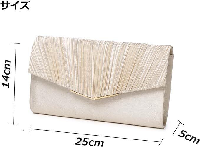 「結婚式、パーティー、フォーマルディナーなど、幅広いシーンで活躍すること間違いなしのクラッチバッグです。おしゃれなデザインと使い勝手の良さで、特別な日を彩る際に欠かせない存在です。」