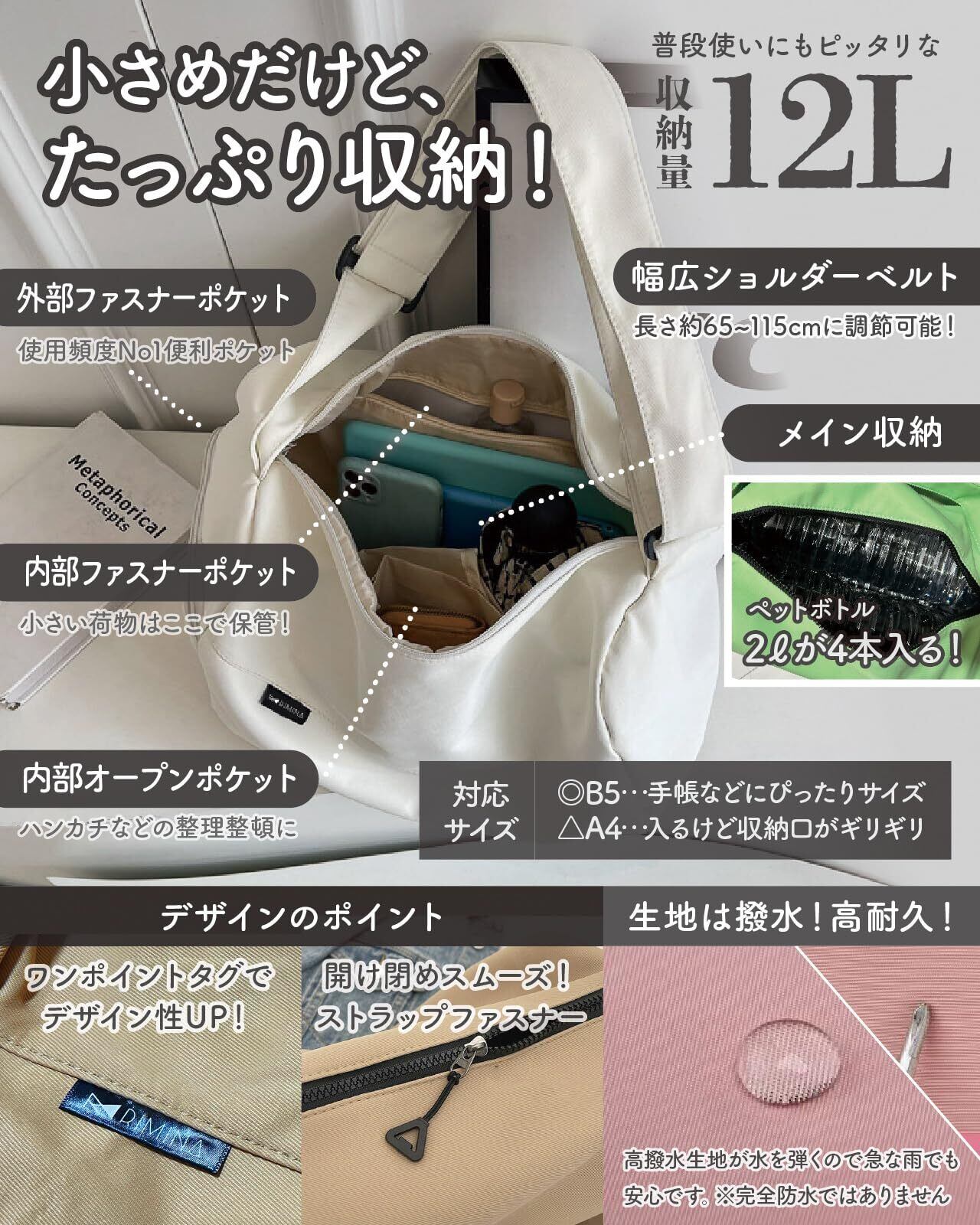[RIMINA] 【雑誌掲載!軽くて大容量】 ショルダーバッグ レディース メンズ 大容量 軽量 可愛い おしゃれ 斜め掛け 大きめ