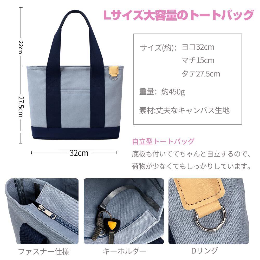 [MIPOHAM] トートバッグ レディース キャンバス 仕切り Lサイズ 大容量 キャンパストート 帆布 大きめ a4 トート マチ広 軽量 マザーズバッグ シンプル 無地 おしゃれ 多収納 ポケット 頑丈 保育園 通勤 通学 旅行