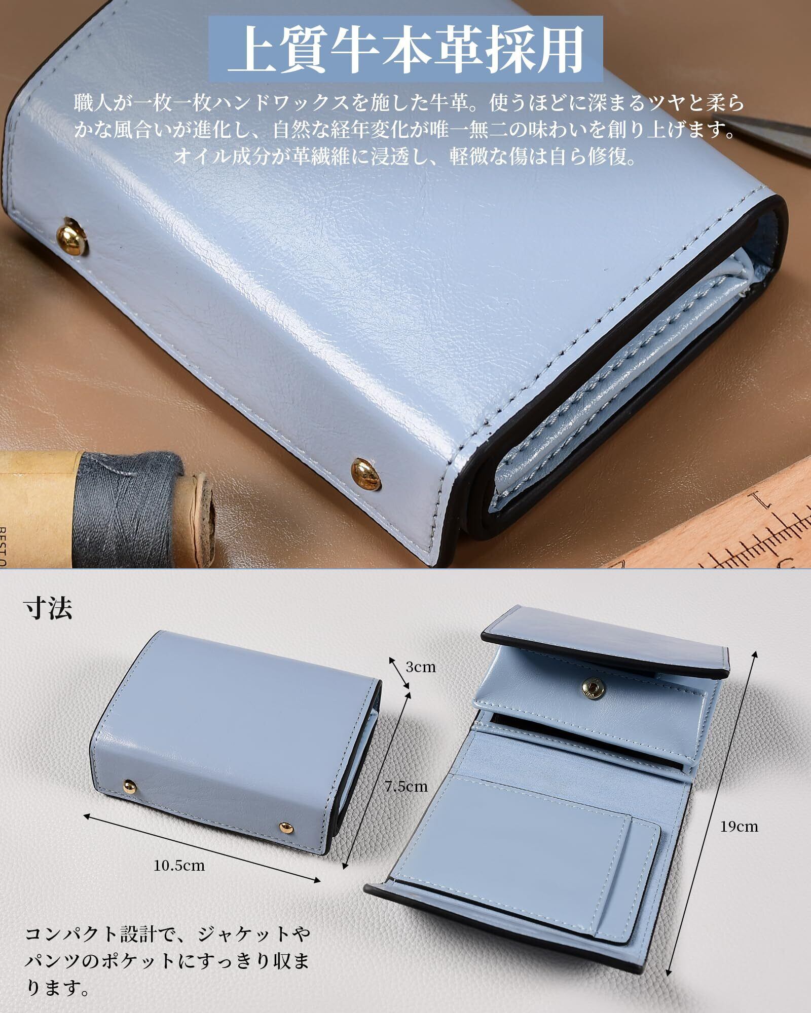 [Modiko] 財布 レディース 2つ折り 箱型財布 オイルドレザー 本革 大容量 ボックス型小銭入れ コンパクト 11色展開 ミニ財布 左利き 右利き 母の日 誕生日 ギフト対応 人気 (ブルー)