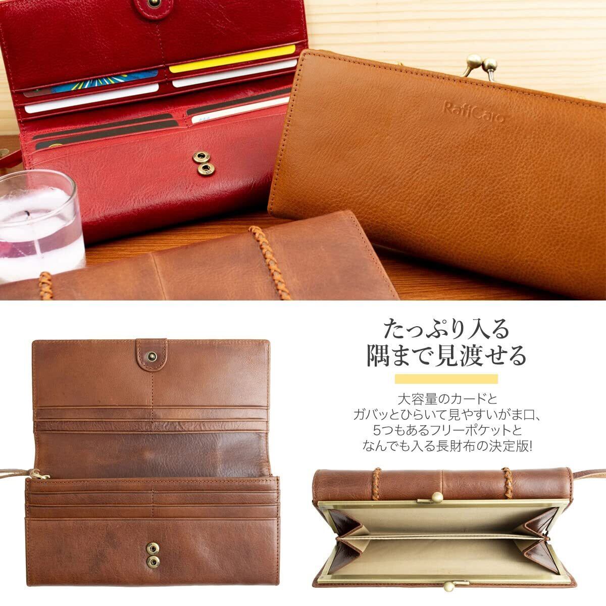 **\[RafiCaro] がま口財布 レディース - イタリアンレザー使用の大容量本革長財布!/**