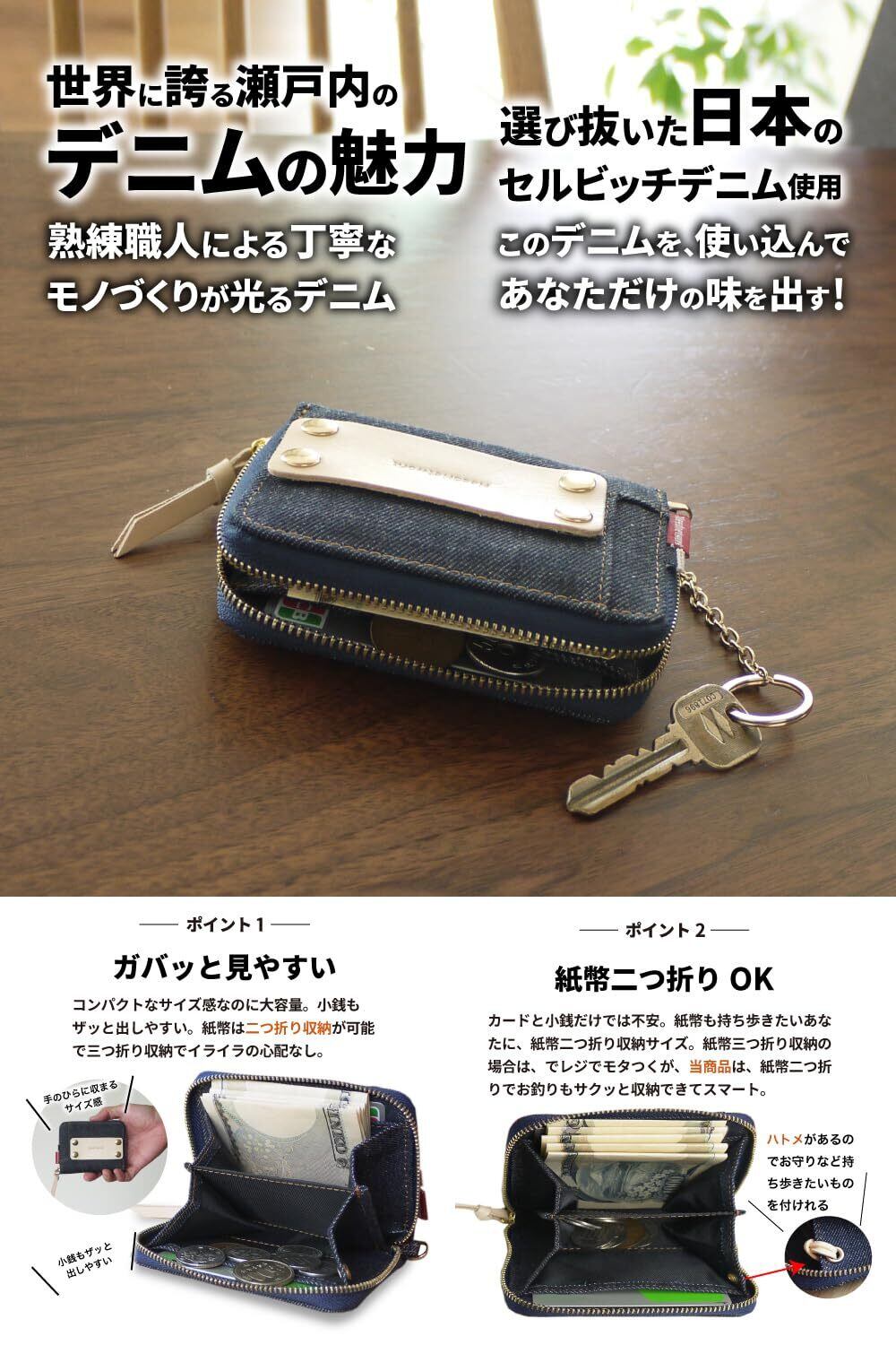 [ニードネットワーク] 日本が誇るデニム 小銭入れ コインケース ファスナー メンズ レディース 財布 カードケース ミニ財布 コンパクト 小さい キーチェーン付