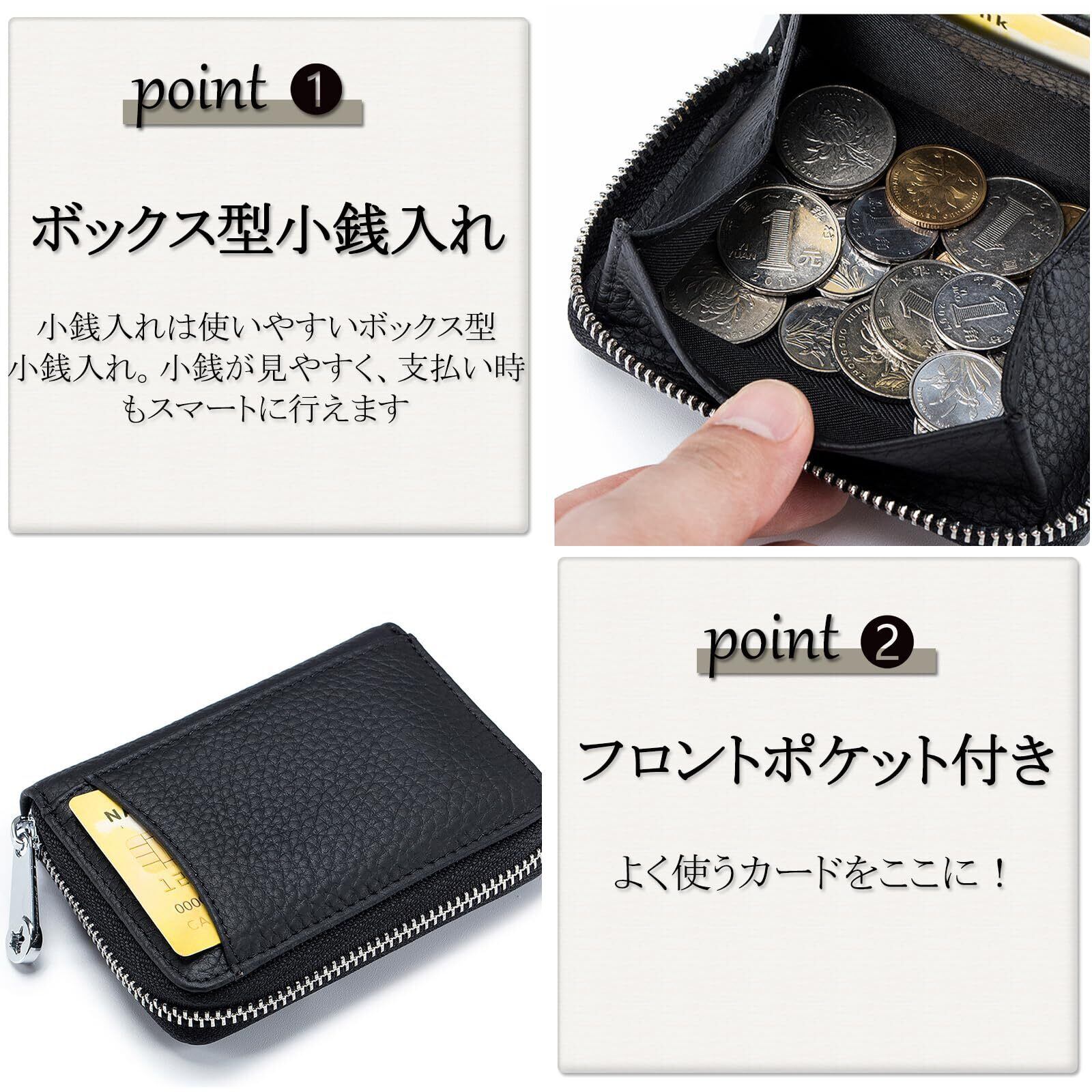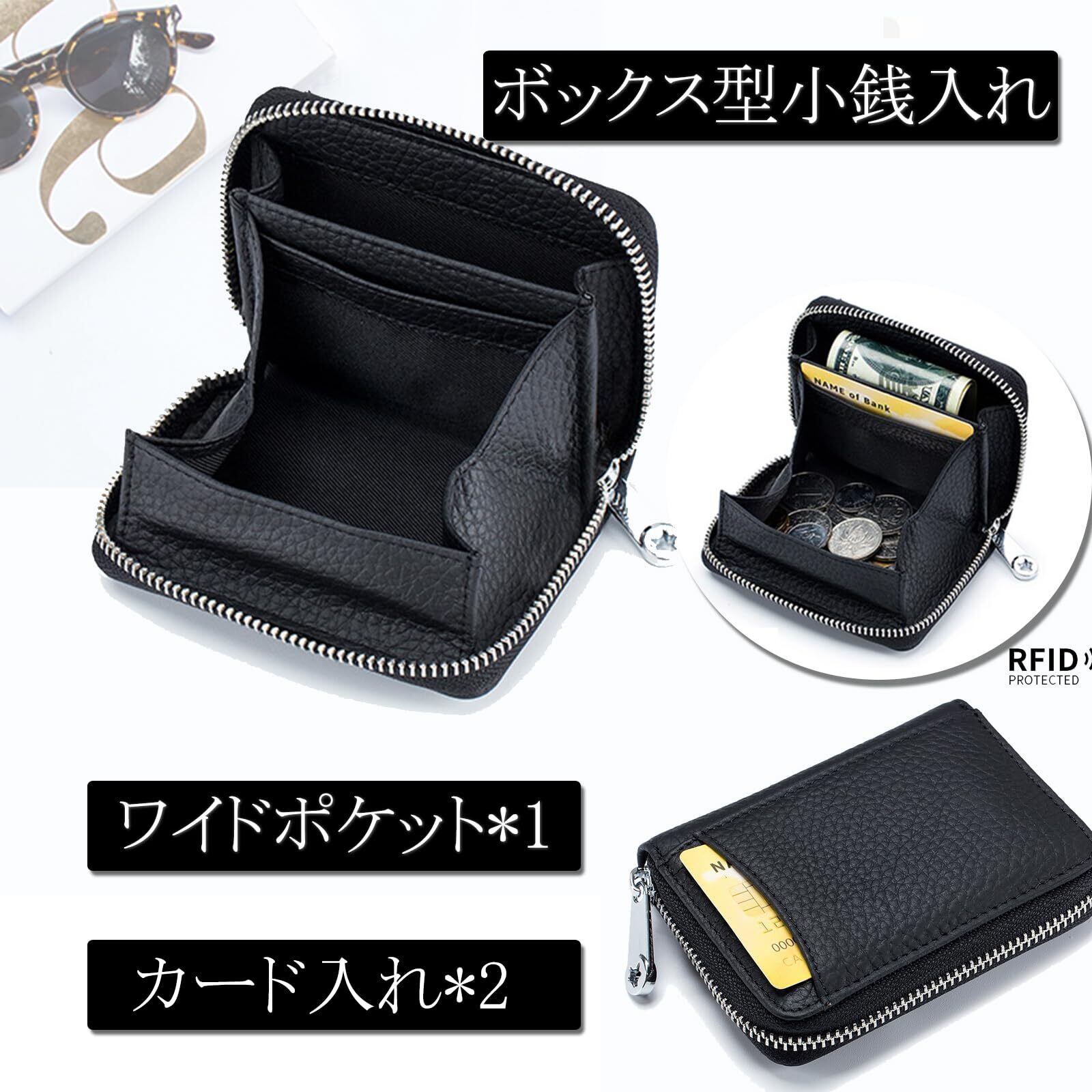 - 特徴:ボックス型、小銭入れ、カードケース、スキミング防止機能付き