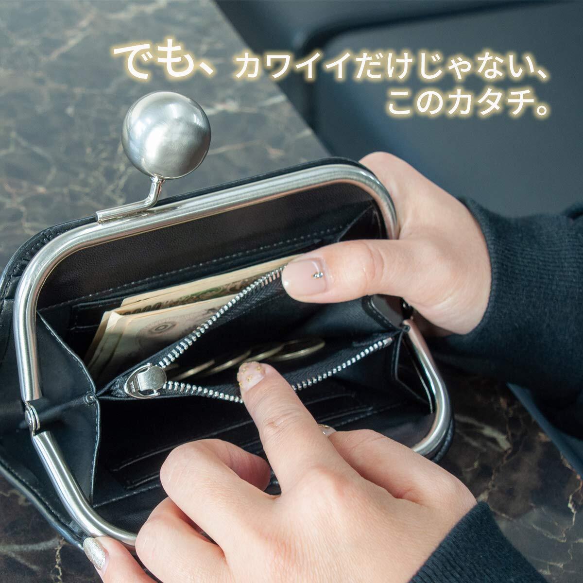 [RafiCaro] 大玉 がま口 財布 レディース 大容量 牛革 大きい お札入れ 小銭入れ コインケース カードポケット 革 レザー ウォレット ブラック