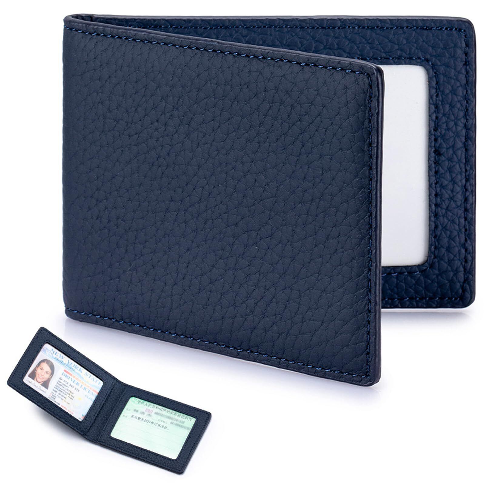 [RenLianyi] 免許証ケース レディース メンズ 薄型 人気 本革 免許証入れ 二つ折り 軽量 丈夫さ 運転免許証入れ パスケース 2枚カード収納 定期入れ ID IC カード入れ 男性 女性 贈り物 母の日 父の日 誕生日 ギフト ブルー