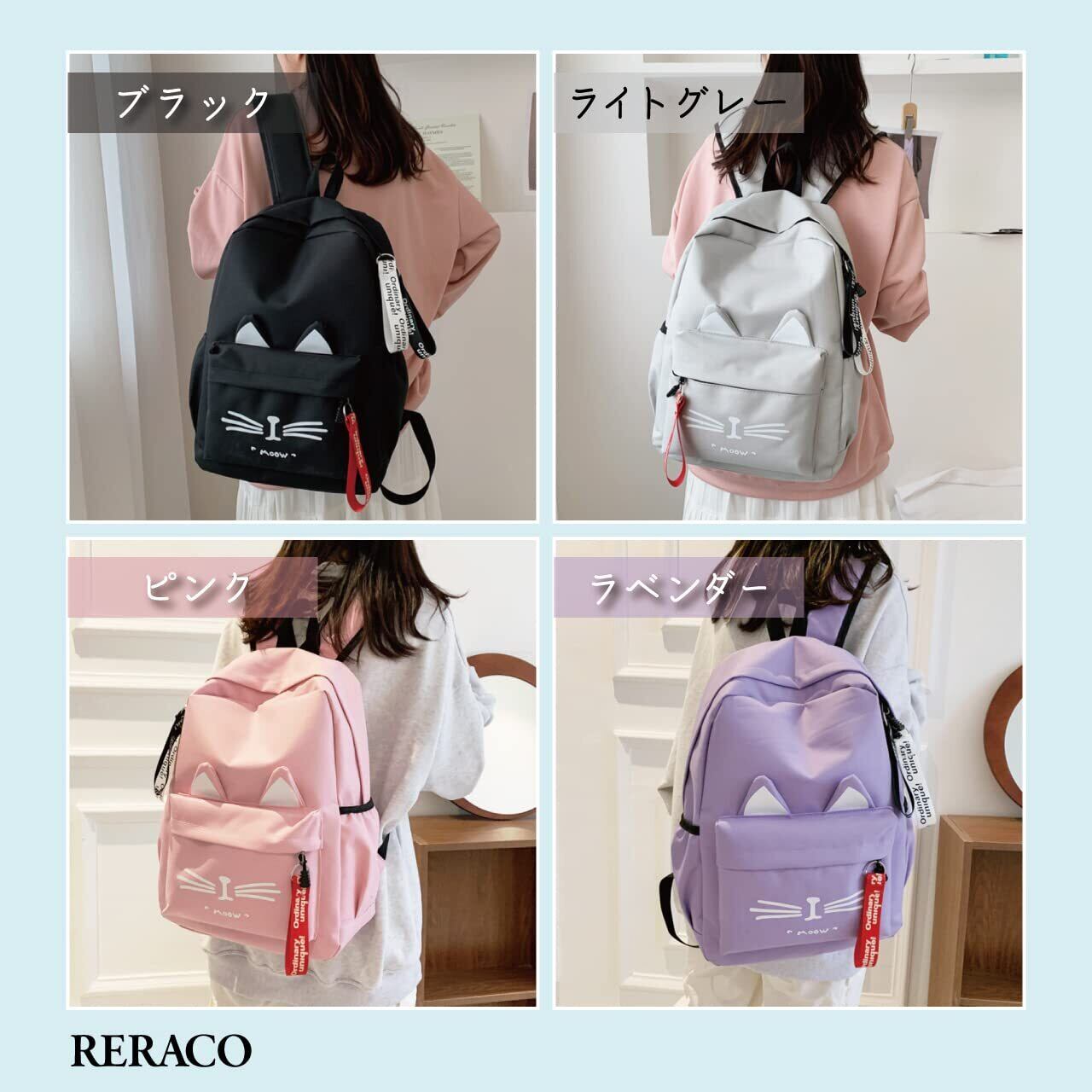 **\[RERACO] リュック バックパック 猫 ねこ 黒 猫耳 - 可愛いデザインが魅力の大容量バックパック!/**