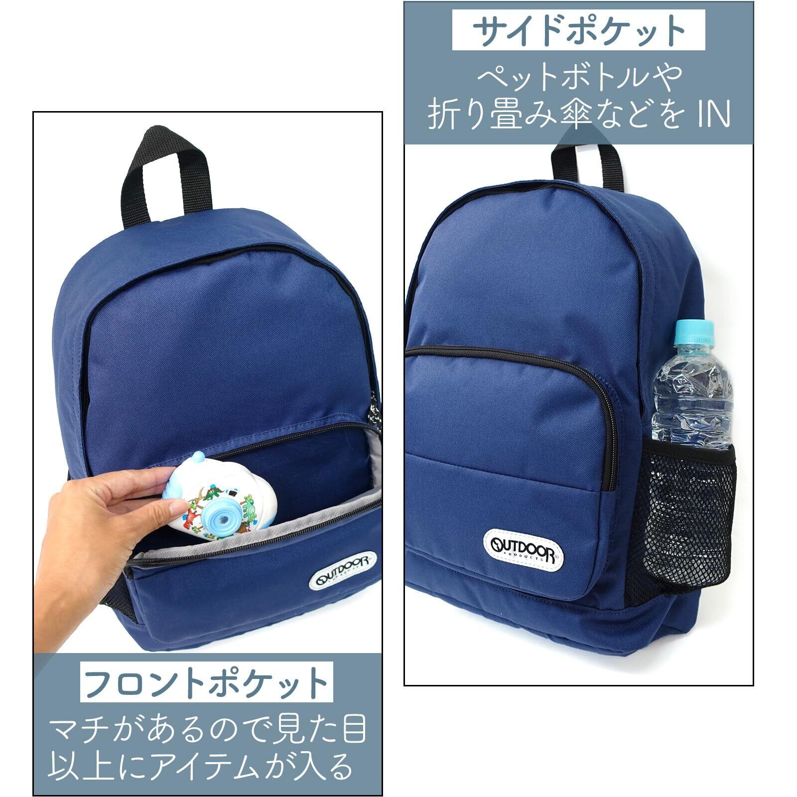 「A4サイズに対応したメインコンパートメントを持ち、教科書やノート、お弁当などしっかり収納できます。また、外側には便利なメッシュポケットが付いているため、水筒や小物をさっと取り出すことができ、使い勝手も抜群です。」